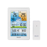 Bezprzewodowa stacja pogodowa termometr higrometr zegar fazy księżyca kalendarz budzik z drzemką biała