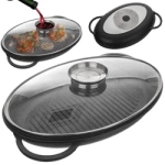 Patelnia do grillowania granitowa z pokrywką głęboka GRANDE 43x28x6 cm