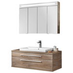 Szafka łazienkowa 110 cm z nablatową umywalką z konglomeratu 80 cm biały + dąb naturalny Stanford Fackelmann