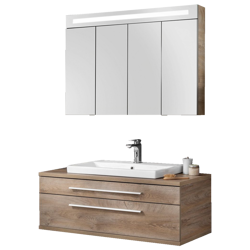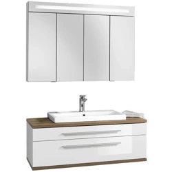Szafka łazienkowa 110 cm biały + dąb naturalny z ceramiczną umywalką nablatową 60 cm Stanford Fackelmann