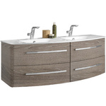 Zestaw szafka łazienkowa + szafki boczne z umywalką z konglomeratu 120 cm szary dąb + biały Luxor Fackelmann
