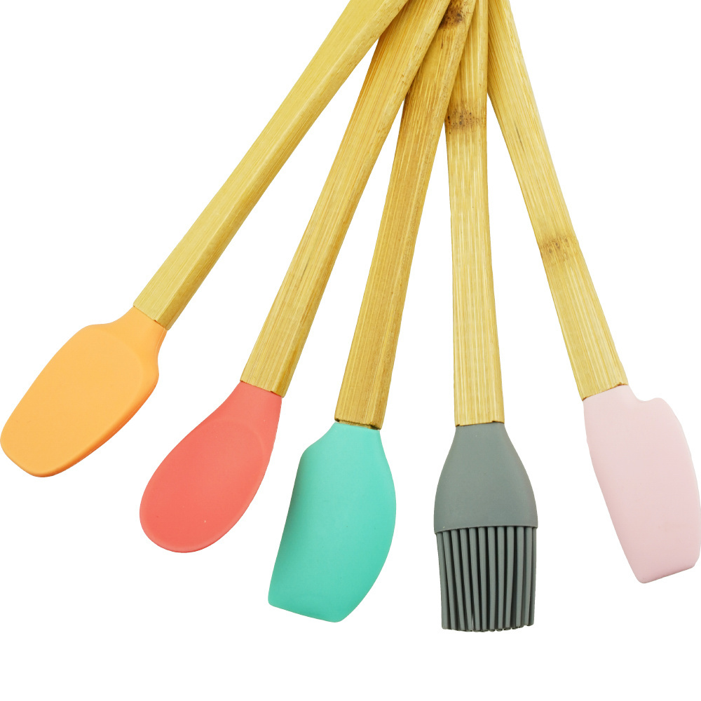 Kolorowy zestaw łopatek do gotowania jest bardzo stylowy, wykonany z wysokiej jakości silikonu spożywczego i materiału bambusowego.