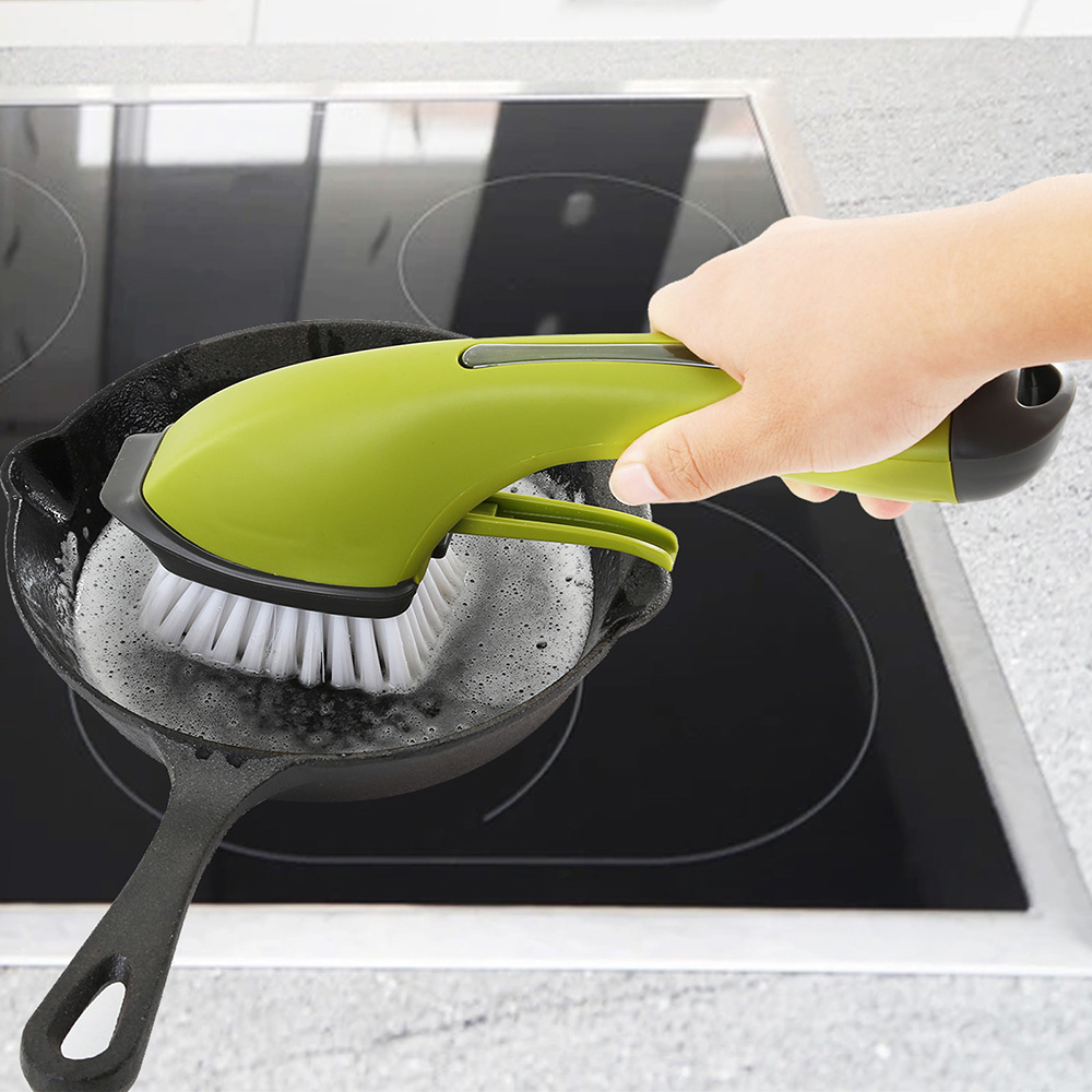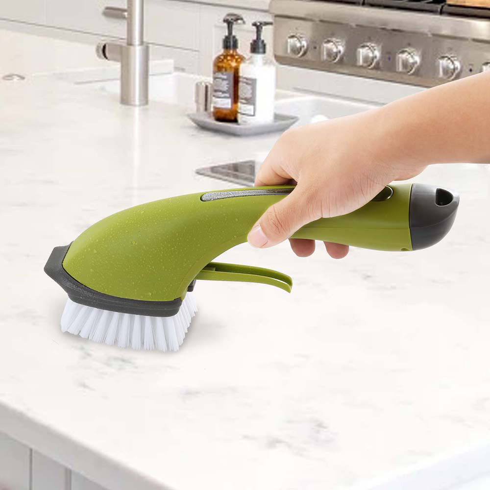 Szczotka do mycia szorowania z dozownikiem płynu i spryskiwaczem zielona