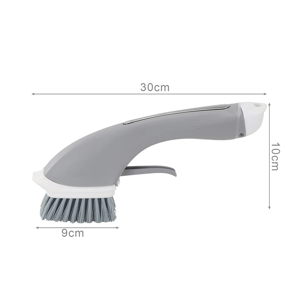 - Szczotka do mycia i szorowania z dozownikiem na płyn wykonana z tworzywa. Pozwala na oszczędne oraz higieniczne umycie większości powierzchni wykorzystywanych w domu.