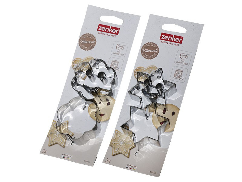 Foremki do wykrawania ciastek marki Zenker wykonane z solidnej stali nierdzewnej. W jednym opakowaniu znajdują się 2 sztuki wykrawaczy o wymiarach: 6cm x 6cm. Jedna sztuka to standardowy wykrawacz, a druga posiada zamontowane otwory, dzięki którym można wyciąć uśmiechnięta buźkę w ciasteczku.