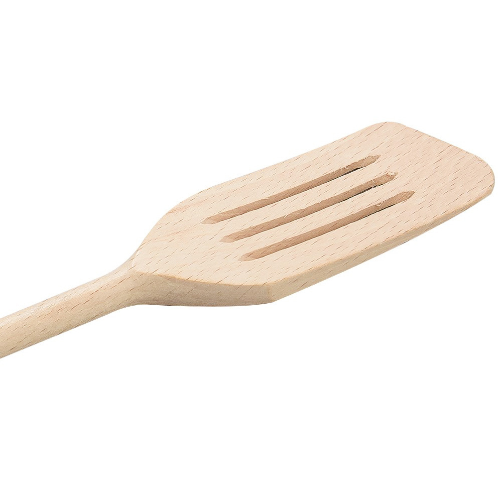 Ażurowa łopatka kuchenna została wykonana z twardego drewna bukowego, dzięki czemu nic do niej nie przywiera, a dodatkowo nie rysuje powierzchni teflonowych czy też ceramicznych.