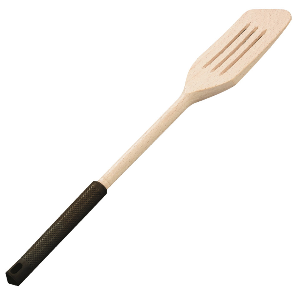 - Prosta drewniana ażurowa łopatka kuchenna idealnie sprawdzi się w każdej kuchnia. Sylikonowa rączka zwiększa komfort codziennego użytkowania.