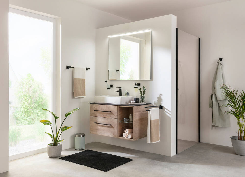 Dzięki meblom łazienkowym wszystkie niezbędne przybory łazienkowe oraz kosmetyki są schowane. Pozwala to zachować ład i porządek w każdej łazience.
