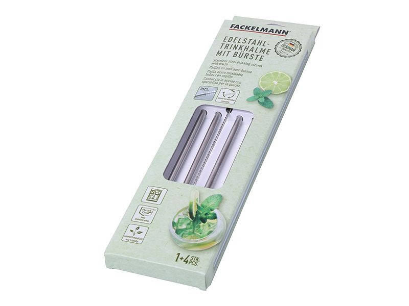 Słomki metalowe niemieckiej firmy Fackelmann przeznaczone do drinków i napojów w wysokich szklankach.