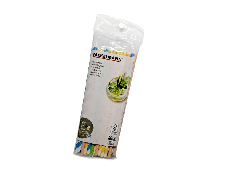 Słomki niemieckiej firmy Fackelmann przeznaczone do drinków i napojów w wysokich szklankach, wykonane z przyjaznego dla środowiska papieru.