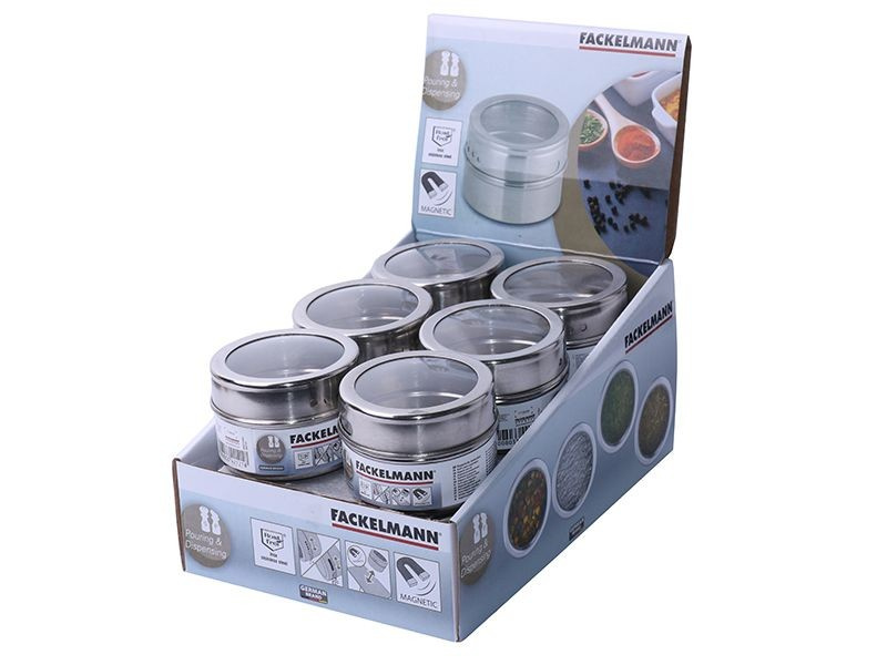 Został on wykonany ze stali wysokiej jakości i wyposażony w przezroczyste wieko, za pomocą którego można sprawdzić zasób przyprawy – spód pojemnika stanowi magnes, dzięki czemu można go umieści na powierzchniach metalowych typu lodówka.