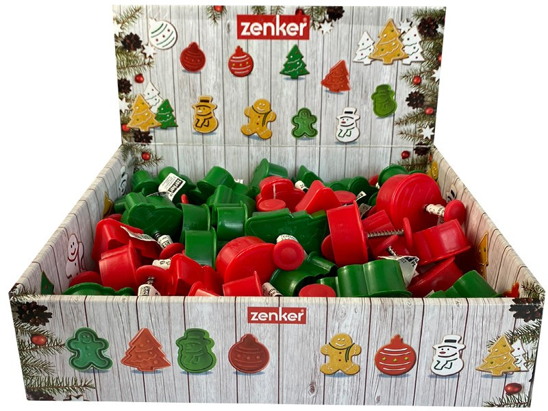 Wykrawacz - stempel do ciastek Zenker niemieckiej firmy Fackelmann. Wykonany z trwałego tworzywa w wyjątkowym świątecznym kształcie: bombki, która występuje w kolorach czerwonym i zielonym. Kolor wysyłany jest losowo.