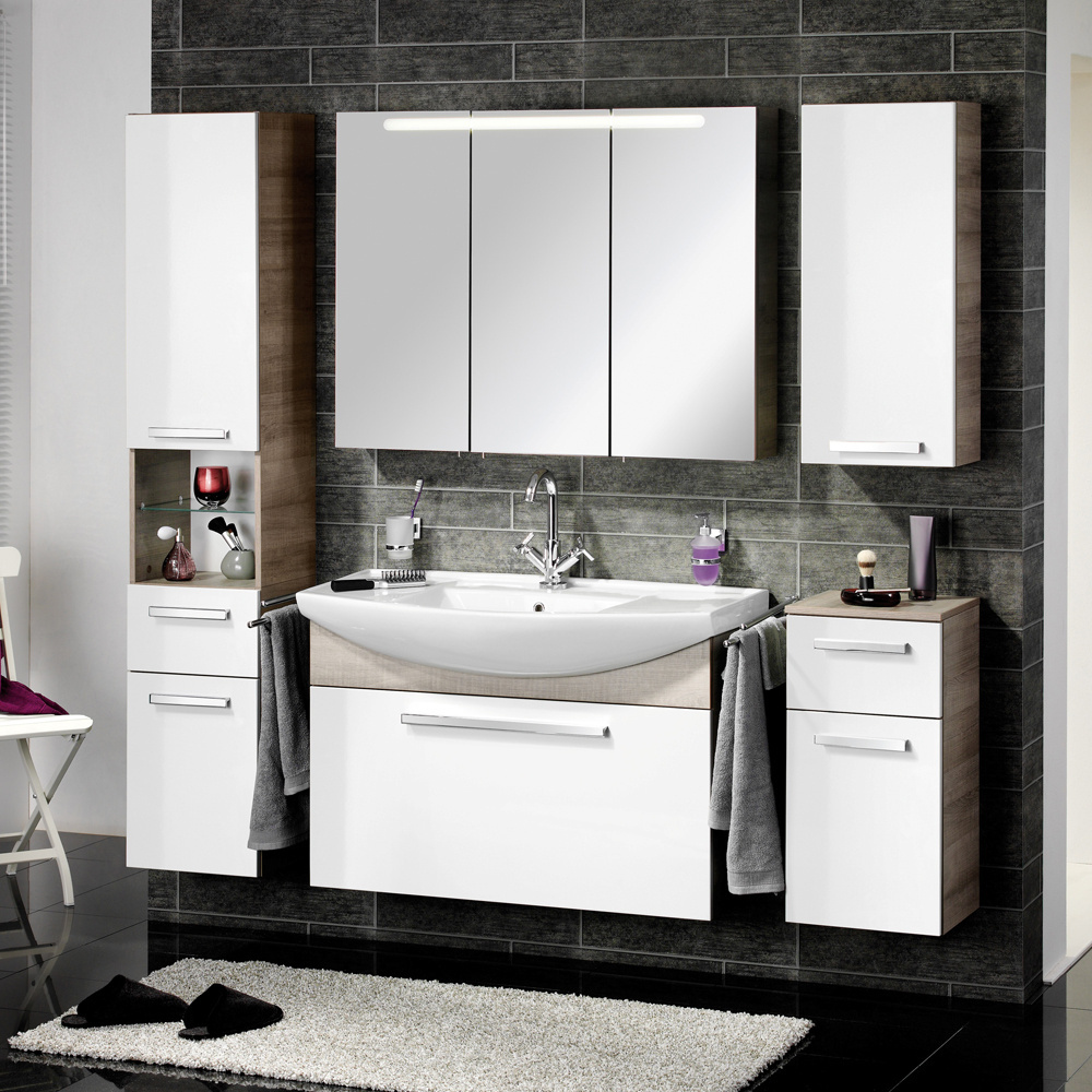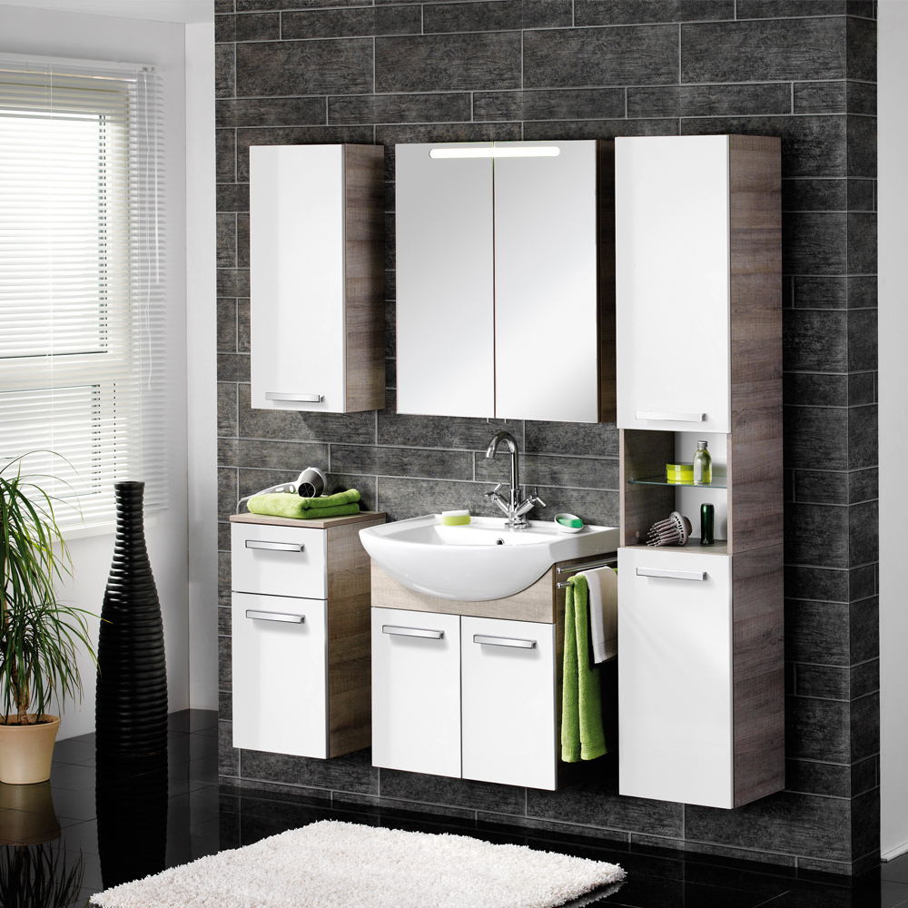 A-Vero to także szafki lustrzane dostępne w dwóch rozmiarach: o szerokości 70 cm oraz 105 cm. Szafki wyposażone są w oświetlenie LED, które doskonale oświetla taflę lustra oraz otoczenie, a dzięki lustrzanym drzwiom można dzięki nim uzyskać efekt 3D.