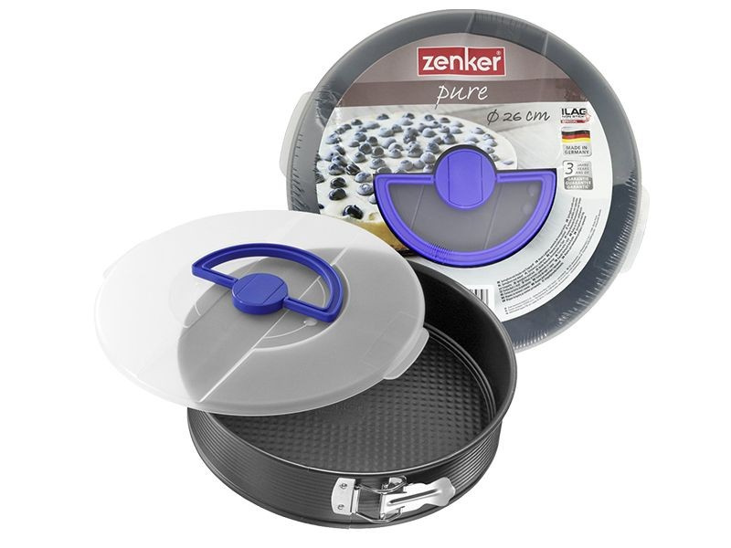 - Forma do pieczenia z pokrywą ZENKER niemieckiej firmy Fackelmann zapewnia równomierne pieczenie się ciast. Blacha posiada podwójną powłokę teflonową, dzięki której ciasto nie przywiera do formy i w szybki oraz łatwy sposób można wyciągnąć z niej wypieki.