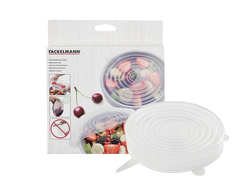 - Zestaw trzech silikonowych pokrywek do misek pozwoli na bezpieczne przechowywanie żywności, pozwoli uniknąć przenikania zapachów oraz zachować świeżość produktów na dłużej.