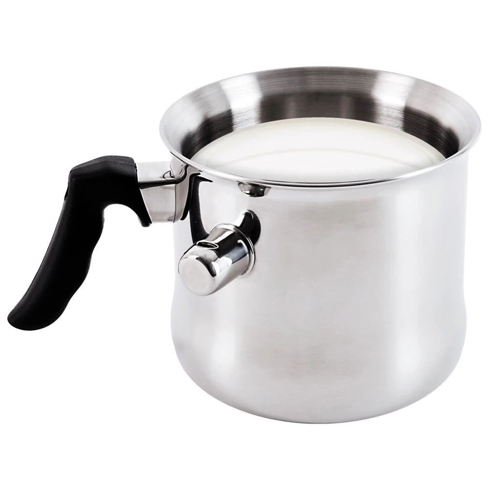 - PRAKTYCZNY - Garnek do gotowania mleka z płaszczem wodnym. Nadaje się na wszystkie rodzaje kuchenek wraz z indukcją. Garnek ma wymiary 18 x 13 cm i pojemność 2,5 litra.