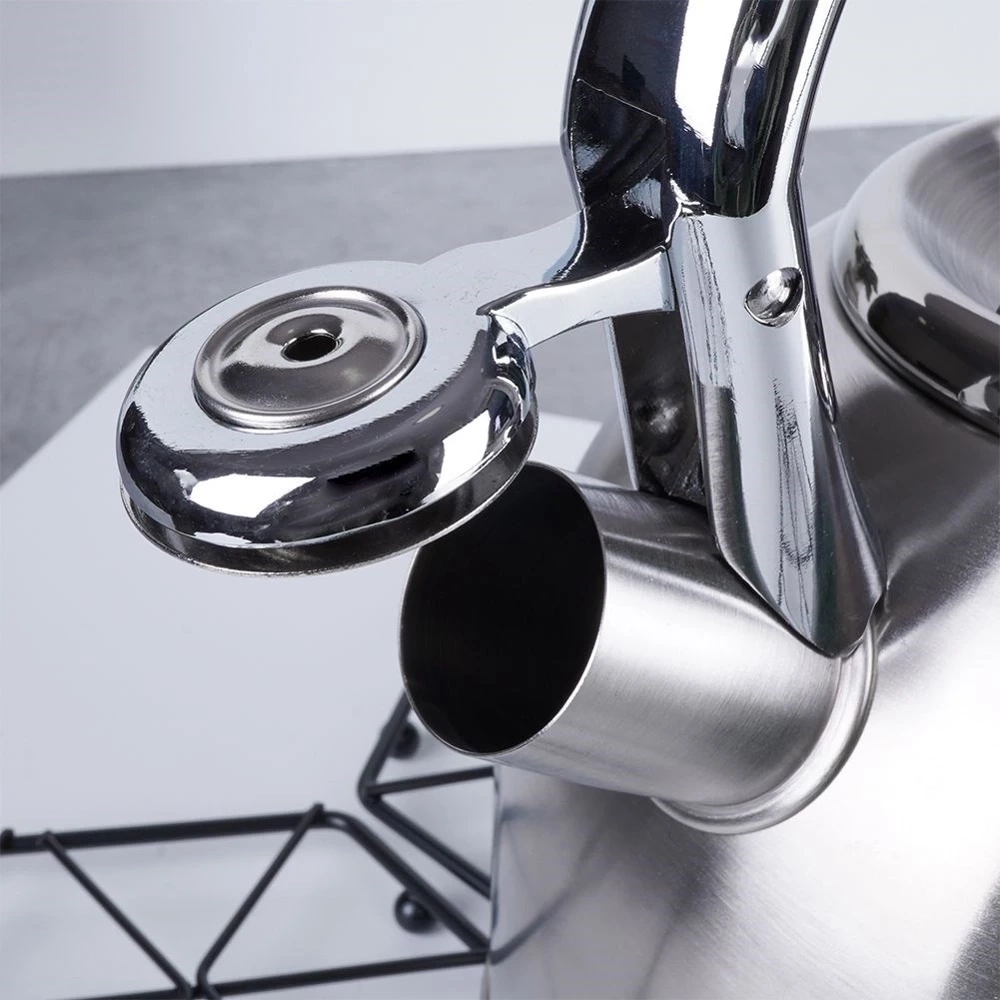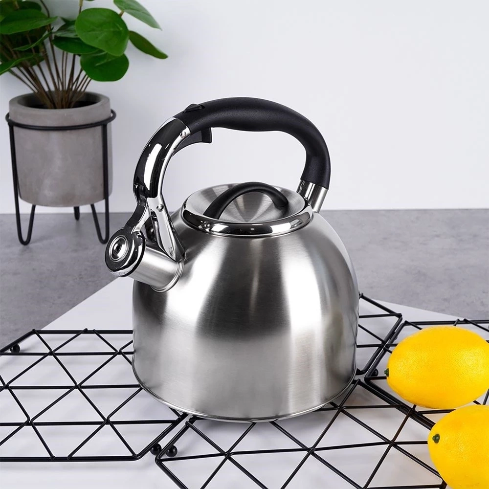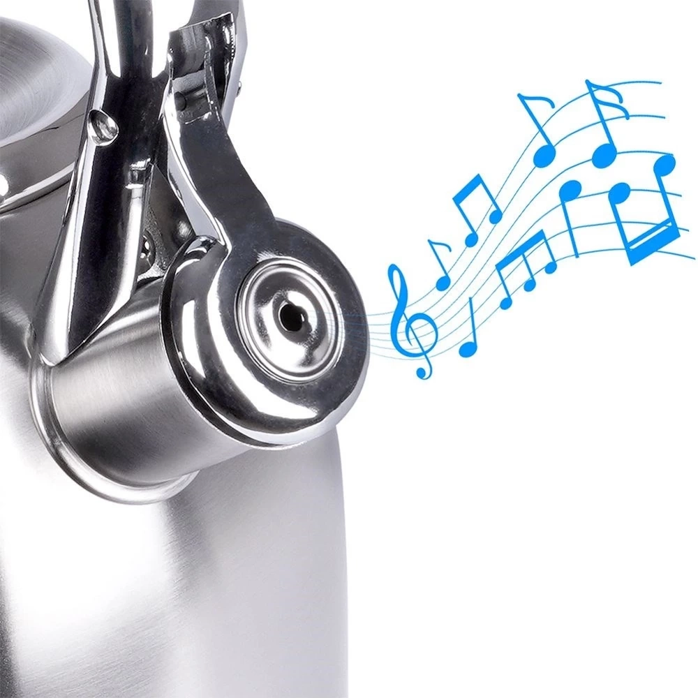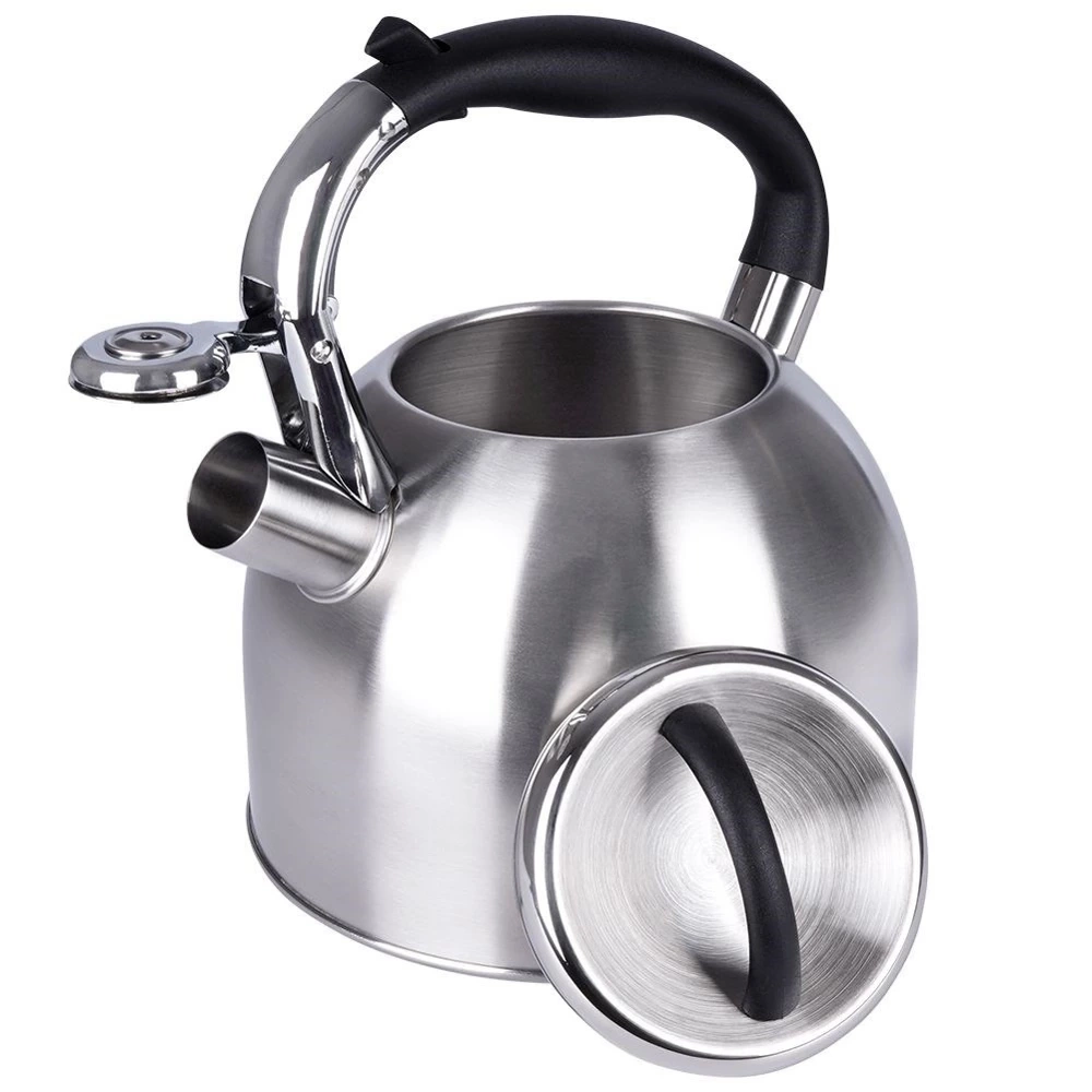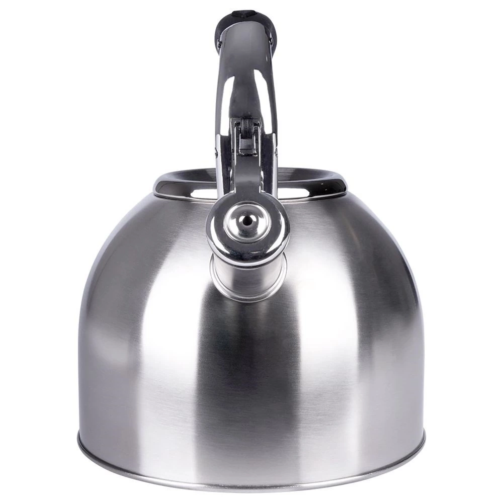 - Czajnik z automatycznym gwizdkiem. Wykonany ze stali nierdzewnej w kolorze srebrnym, uchwyt wykonany z tworzywa w czarnym kolorze. Nadaje się do każdego rodzaju kuchenek wraz z indukcją.