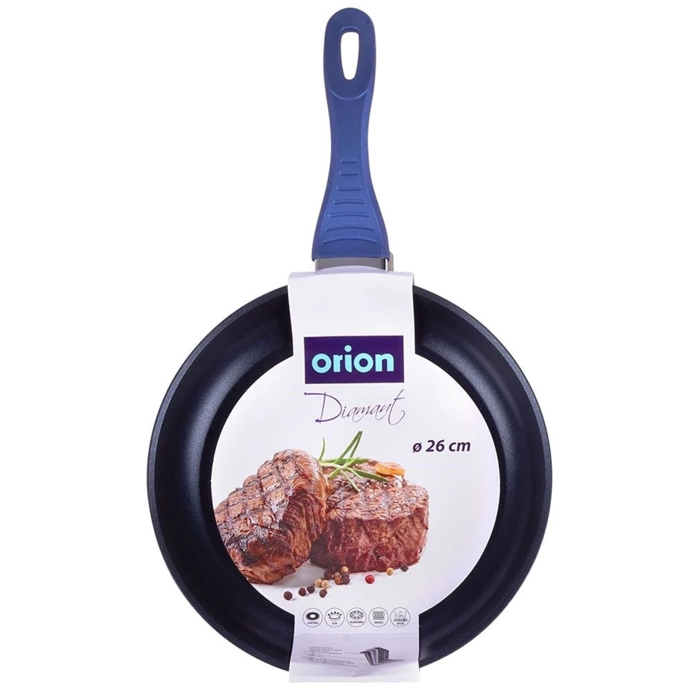 Nieprzywierająca patelnia o wyjątkowym, ponadczasowym wyglądzie. Patelnia jest niezbędna w każdej kuchni. Z jej pomocą usmażymy mięso, warzywa, jak i naleśniki. Patelnia jest odporna na korozję chemiczną spowodowaną detergentami. Oryginalny produkt czeskiej marki Orion. Wyprodukowano zgodnie z europejskimi standardami.
