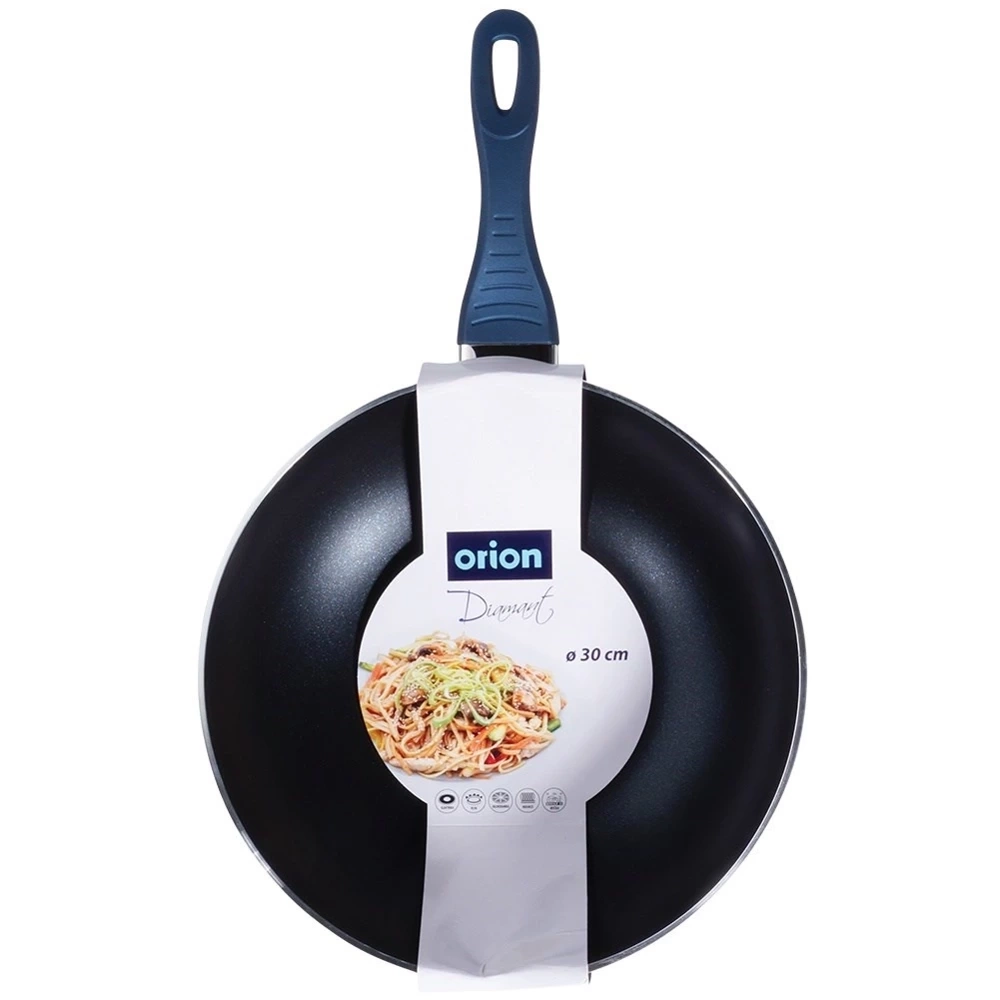 - Odporna patelnia typu wok o średnicy 30 cm - Patelnia z powłoką diamentową o średnicy 30 cm. Patelnia posiada kształt typowy dla woka, będzie idealnym pomocnikiem przy przygotowywaniu dań azjatyckich i nie tylko. Wymiary zewnętrzne: 49 x 31 x 12 cm. Dno patelni ma średnicę 15 cm, a ścianka grubość 4 mm, wysokość patelni bez uchwytu wynosi 9 cm. Wykonana z odlewu aluminium. Patelnia jest solidna i masywna. Wyjątkowo odporna, nawet dla profesjonalnych zastosowań.