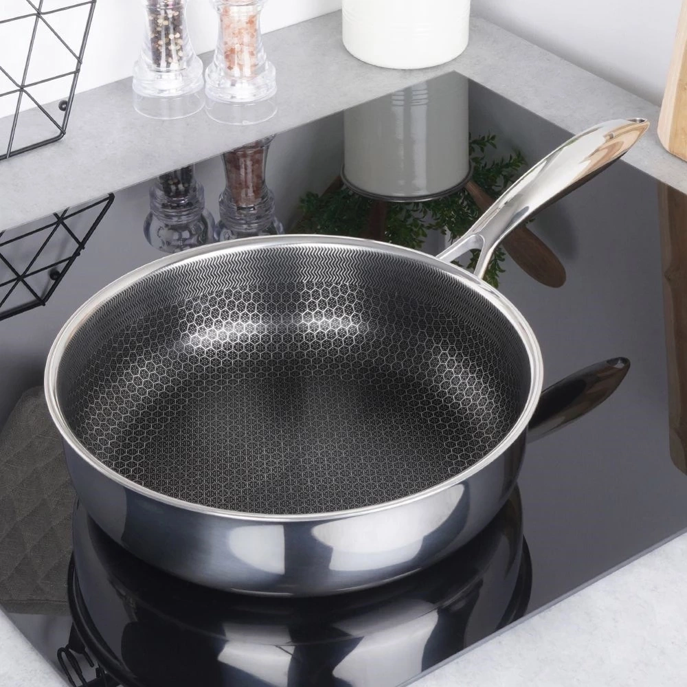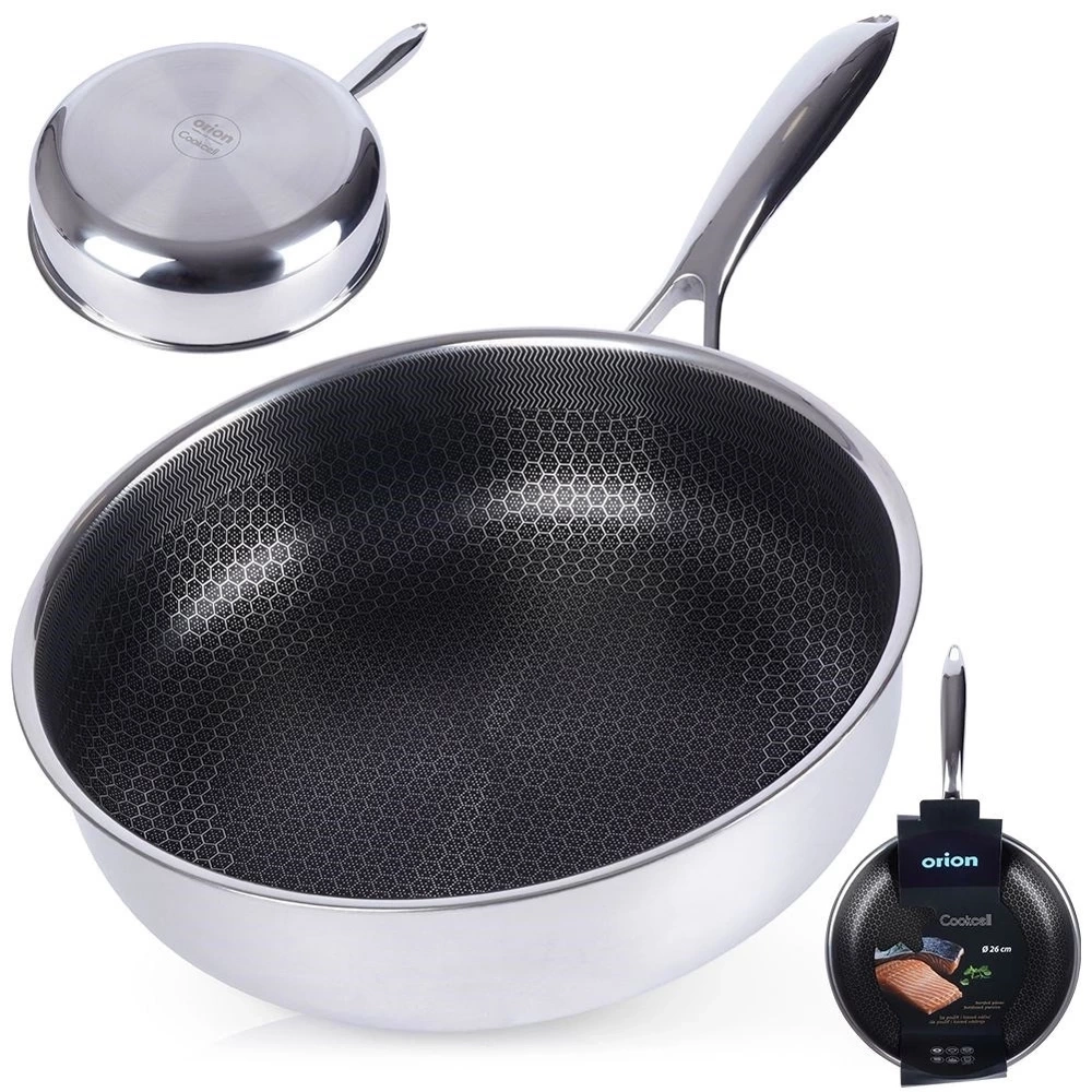 - NIEZAWODNA - Patelnia klasy premium wykonana z najwyżej jakości stali nierdzewnej z powłoką nieprzywierającą o średnicy 26 cm. Wymiary zewnętrzne: długość 47 cm, wysokość patelni 7,5 cm, wysokość z rączką 9 cm. Patelnia jest wytrzymała i trwała. Patelnia jest z unikatowej serii COOKCELL HYBRYD.