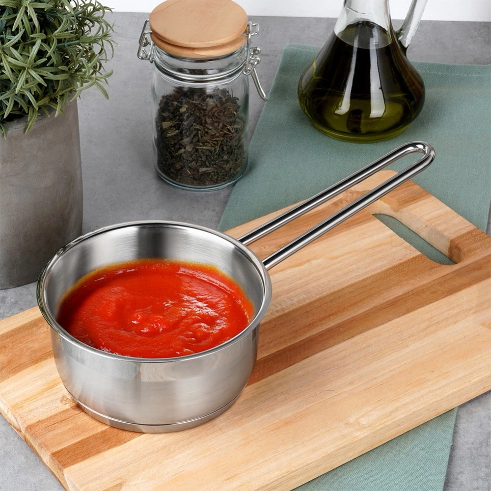 - WYGODNY - Wyposażony w wygodny uchwyt, który ułatwi przenoszenie. Rondelek można wygodnie zawiesić na relingu kuchennym.