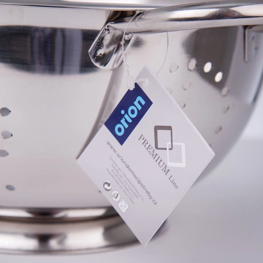 Uniwersalny, stalowy cedzak w formie miski. Wygodny w użytkowaniu dzięki poręcznym uchwytom oraz stabilnej podstawie. Przydatny w każdej kuchni. Naczynie sprawdzi się do mycia warzyw i owoców, a także do odcedzania ryżu, makaronu. Cedzak ma duże rozmiary, co pozwala na odcedzanie większych ilości jedzenia naraz. Solidnie wykonany. Łatwy w czyszczeniu i wygodny w użytkowaniu. Oryginalny produkt czeskiej marki Orion. Wyprodukowano zgodnie z europejskimi standardami.