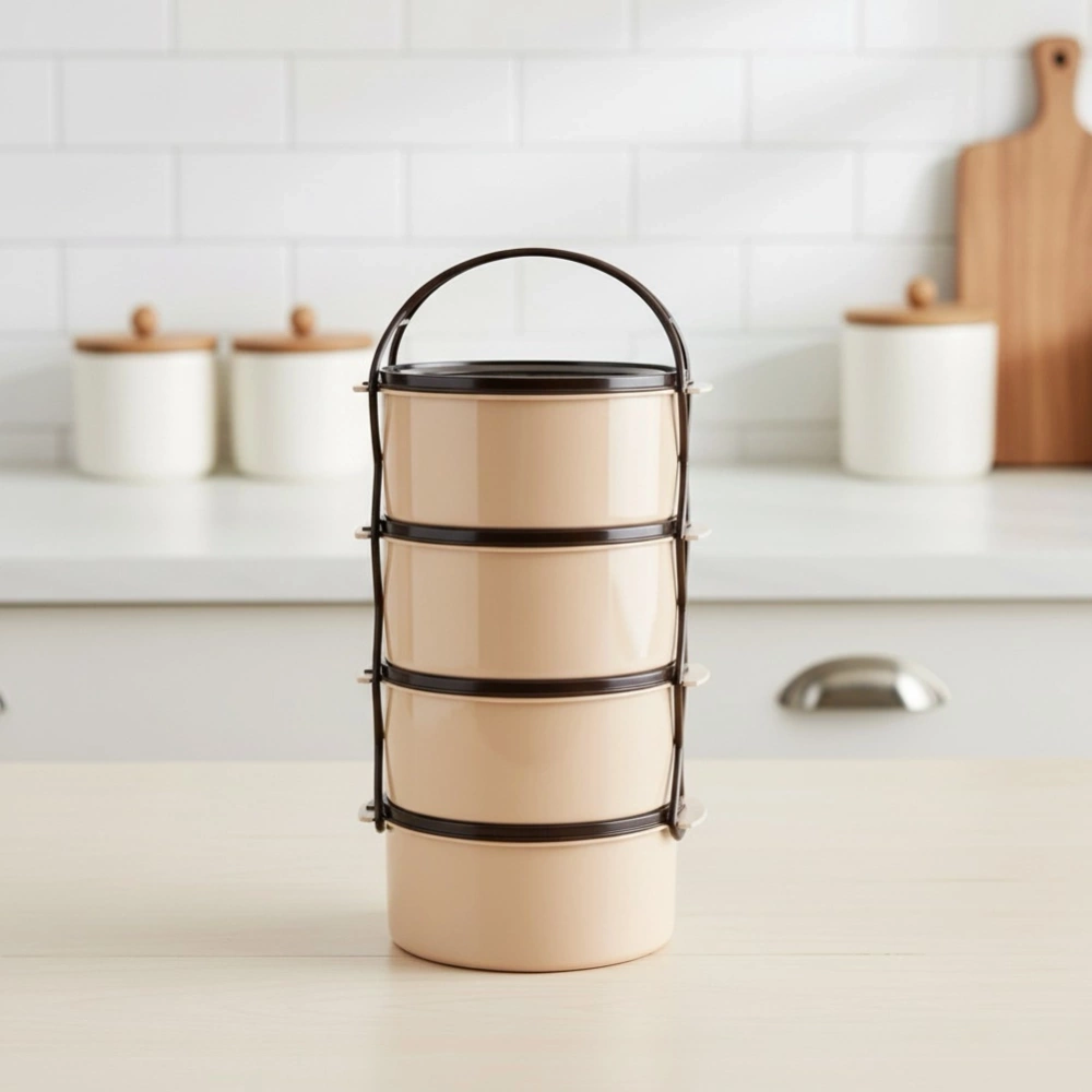 - Menażka do przenoszenia żywności. W zestawie 4 pojemniki z pokrywkami oraz stelaż z uchwytem. Wykonana z najwyższej jakości tworzywa. Każdy pojemnik ma pojemność 1,5 l.