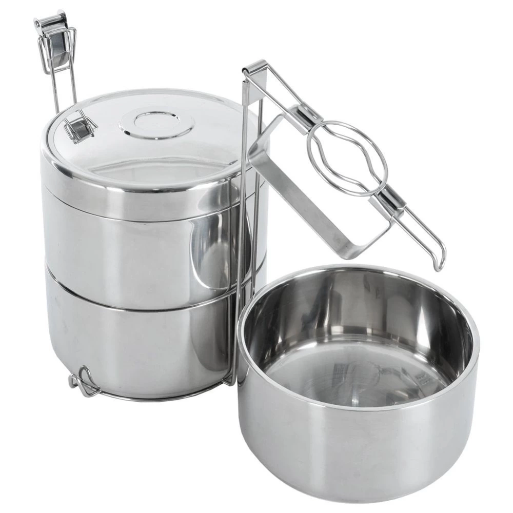 - Termiczna menażka do przenoszenia żywności. W zestawie 3 pojemniki, pokrywka oraz stelaż z uchwytem. Wykonana z najwyższej jakości stali nierdzewnej. Każdy pojemnik ma pojemność 900 ml.