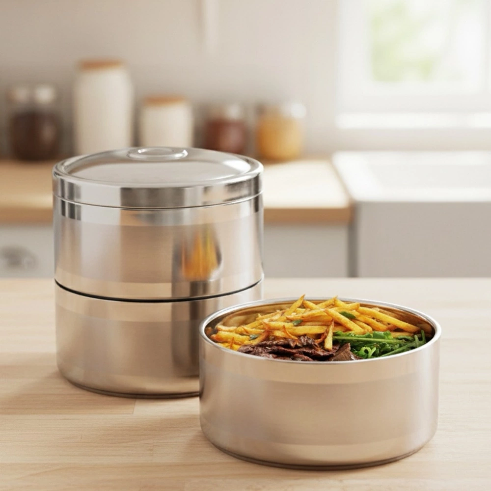 - Termiczna menażka do przenoszenia żywności. W zestawie 3 pojemniki, pokrywka oraz stelaż z uchwytem. Wykonana z najwyższej jakości stali nierdzewnej. Każdy pojemnik ma pojemność 1,1 l.
