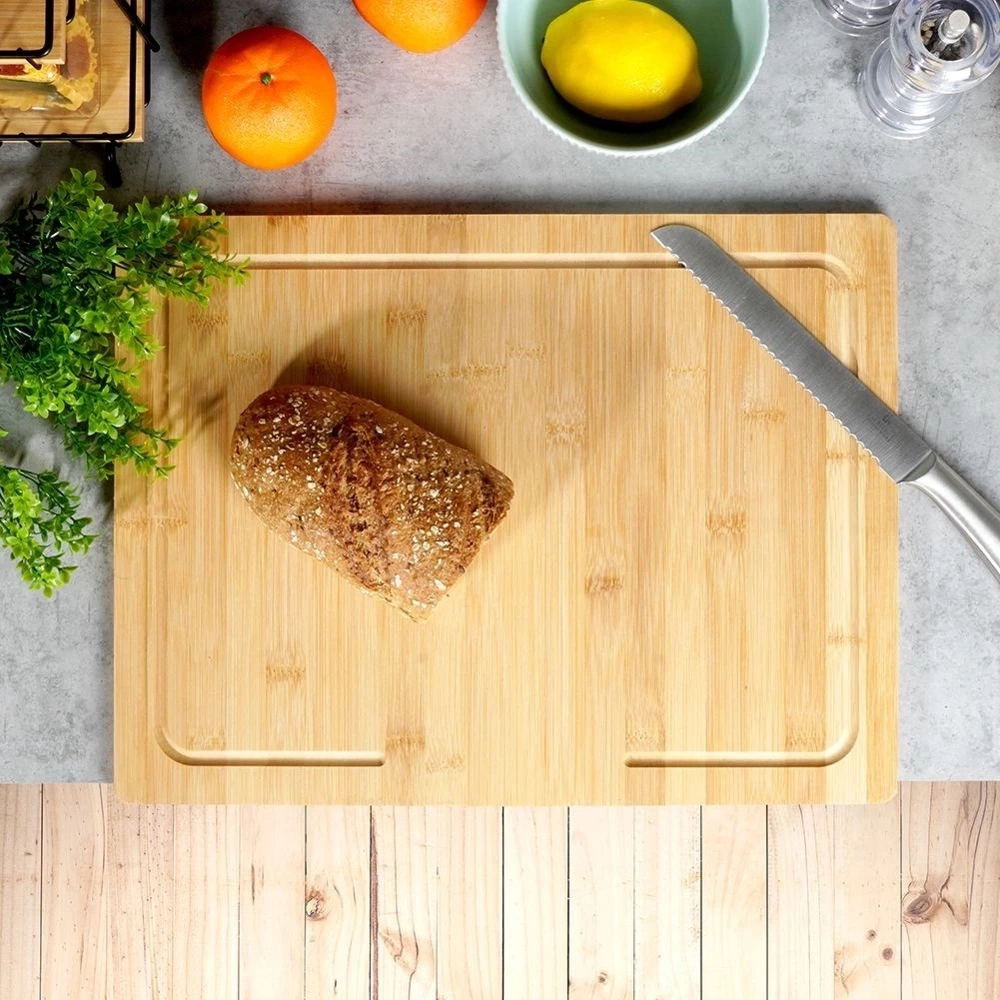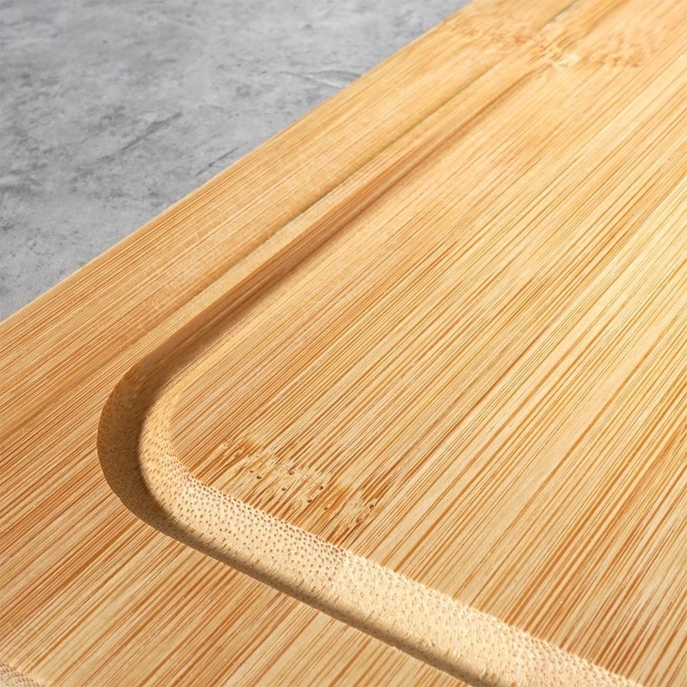 - Duża deska kuchenna z rantem wykonana z drewna bambusowego. Może służyć do krojenia produktów spożywczych lub spełniać funkcję stolnicy.