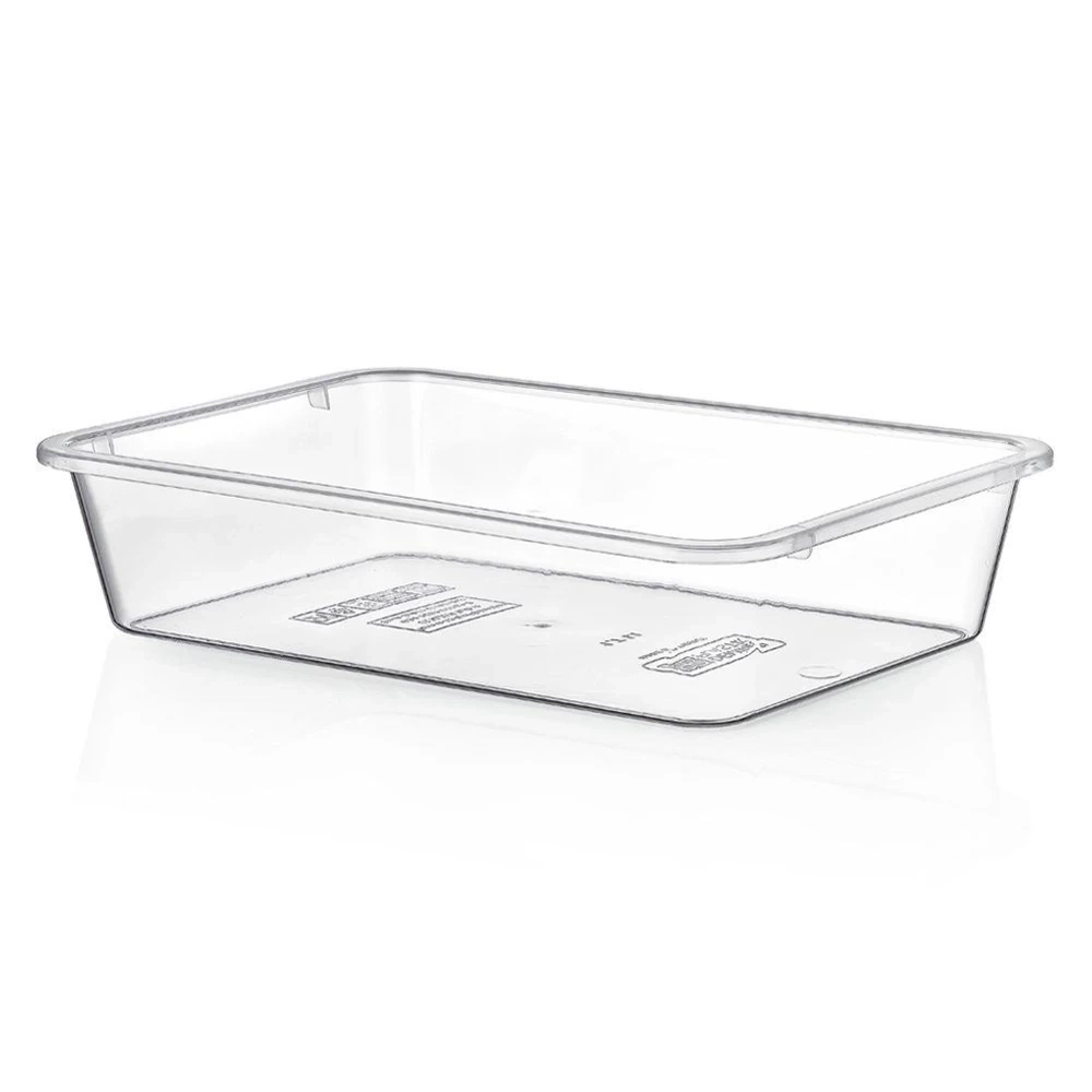 Kuchenny pojemnik do przechowywania produktów spożywczych. Świetnie sprawdzi się jako organizer do lodówki, zwłaszcza do przechowywania owoców oraz warzyw. Dzięki przezroczystej formie można z łatwością zobaczyć zawartość pojemnika. Jest łatwy w utrzymaniu czystości oraz odporny na niskie i wysokie temperatury. Pojemnik nie posiada pokrywki. Przydatny w każdym domu. Wyprodukowano zgodnie z europejskimi standardami.
