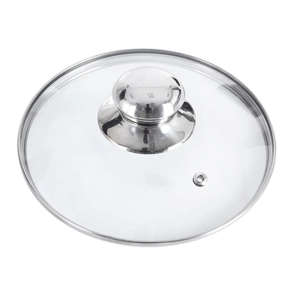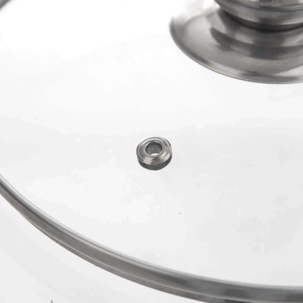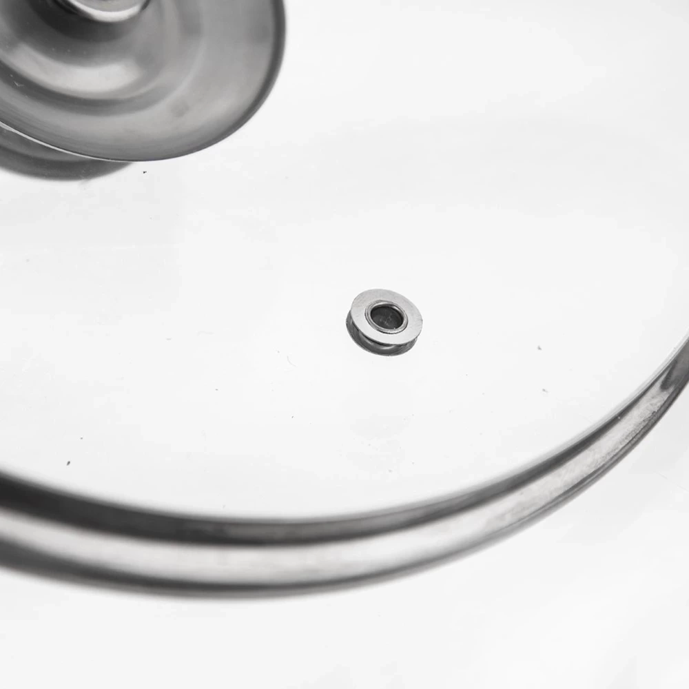 - Szklana żaroodporna pokrywa ze stalową obręczą i rantem. Wyposażona jest w specjalny otwór, który pozwala na uwolnienie nadmiaru pary.