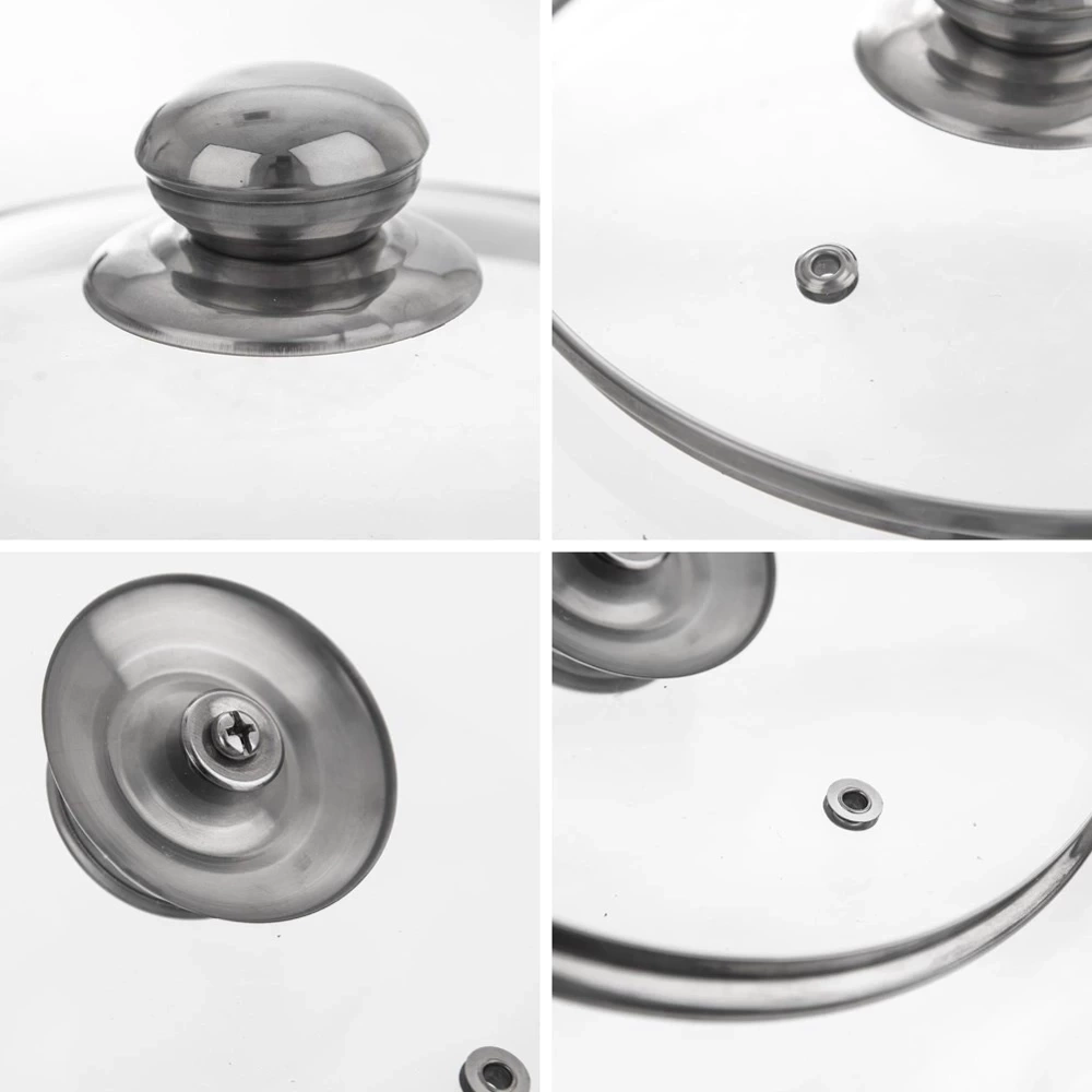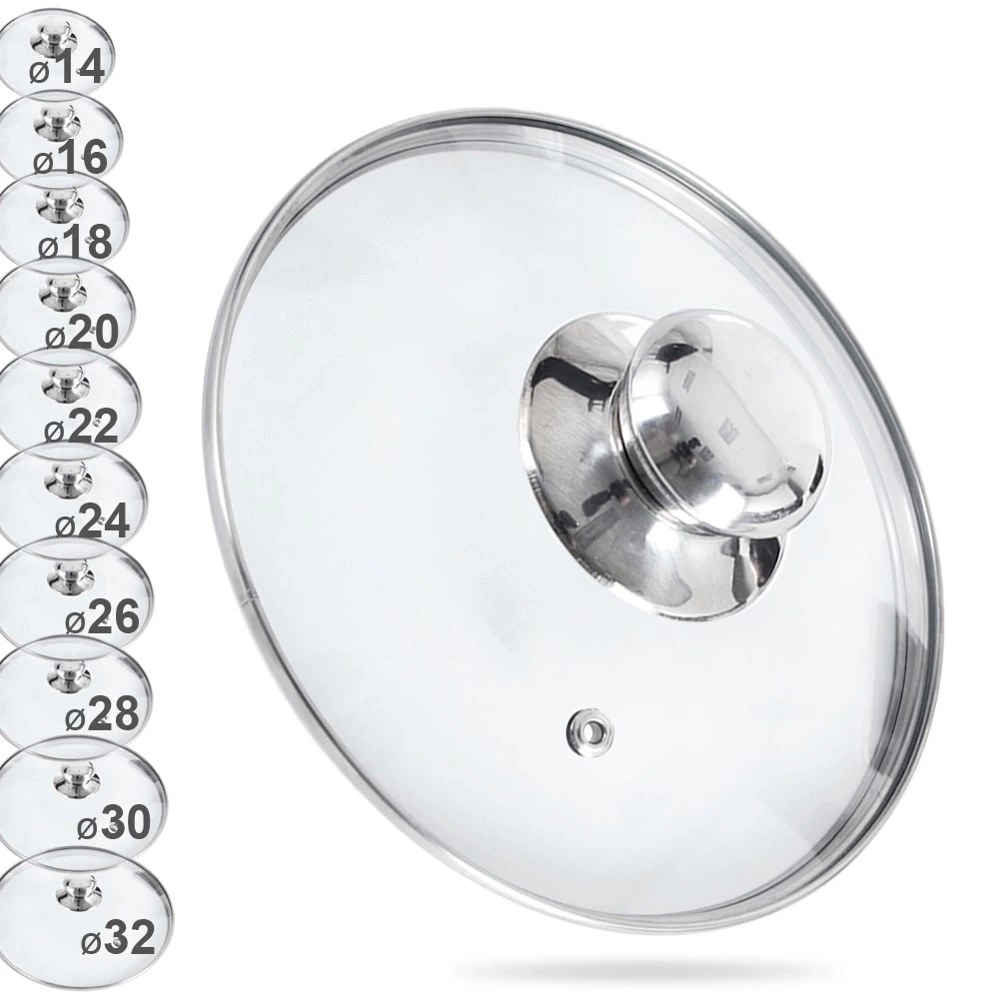 - SZKLANA - Wykonana z żaroodpornego szkła w przezroczystym kolorze a uchwyt i obręcz wykonane ze stali nierdzewnej w srebrnym kolorze. Przezroczysty kolor pokrywki pozwoli nam na sprawdzenie procesu gotowania bez konieczności podnoszenia pokrywki.