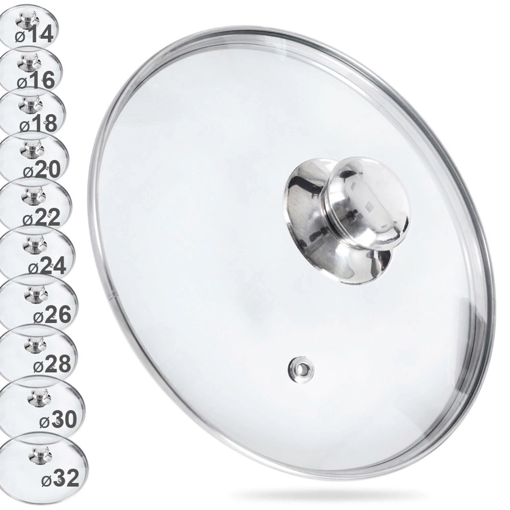 - UNIWERSALNA - Szklana pokrywa ze stalową obręczą i rantem. Pokrywka ma średnicę 26 cm. Pokrywę można użyć do każdego rodzaju garnków, patelni i rondli.