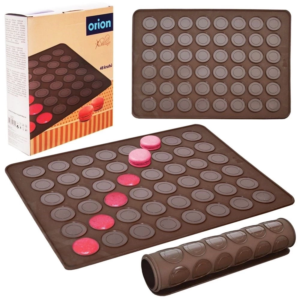 Forma niezbędna do przygotowania francuskich makaroników. Dzięki niej przygotujemy makaroniki w dwóch wielkościach. Silikonowa mata posiada wyprofilowane miejsca, które pozwolą na nadanie odpowiedniego kształtu makaronikom. Nieprzywierająca powłoka, pozwoli na łatwe zdjęcie upieczonych makaroników. Oryginalny produkt czeskiej marki Orion. Wyprodukowano zgodnie z europejskimi standardami.