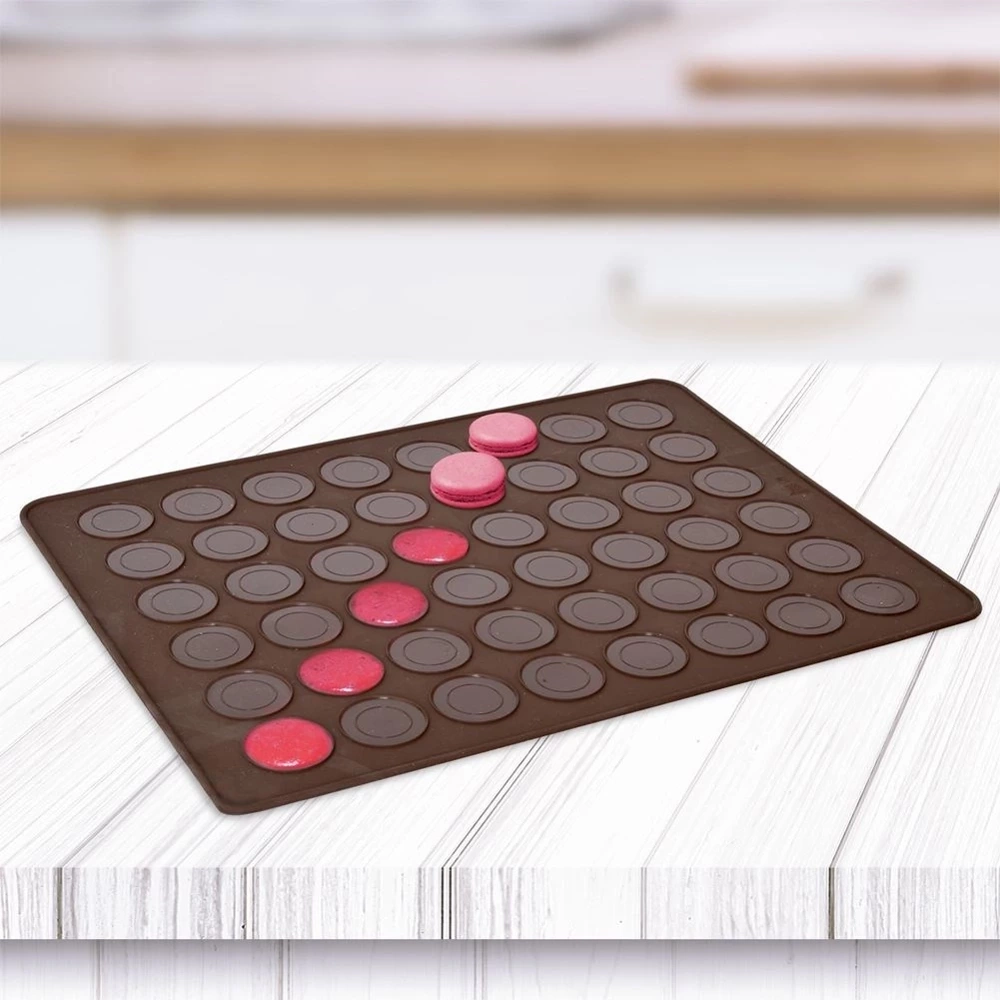 - PRZYDATNA - Forma do przygotowywania 48 sztuk francuskich makaroników, pierścienie w dwóch rozmiarach o średnica 2,5 cm oraz 3,5 cm. Forma ma wymiary zewnętrzne 39,5 x 29,5 x 0,3 cm.