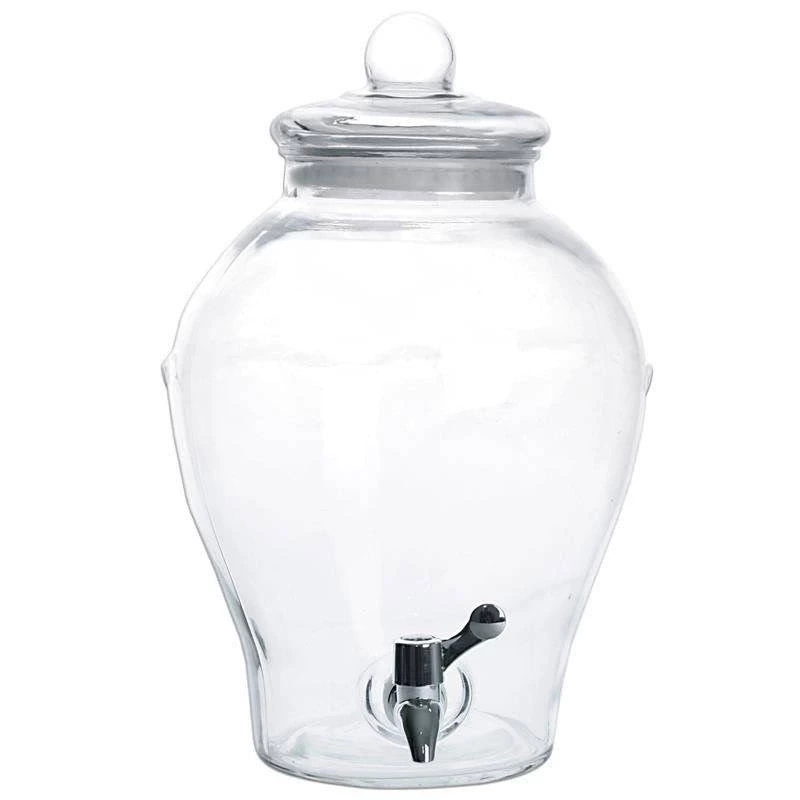 - IDEALNY DO NAPOJÓW - Dystrybutor do napojów z kranikiem o pojemności 6,5 litra. Idealny do serwowania lemoniady w gorące dni, ponczu lub soku podczas imprezy. Wymiary słoju: 23 x 35 cm.