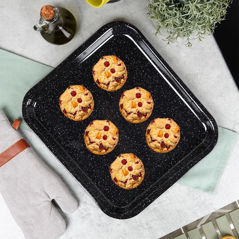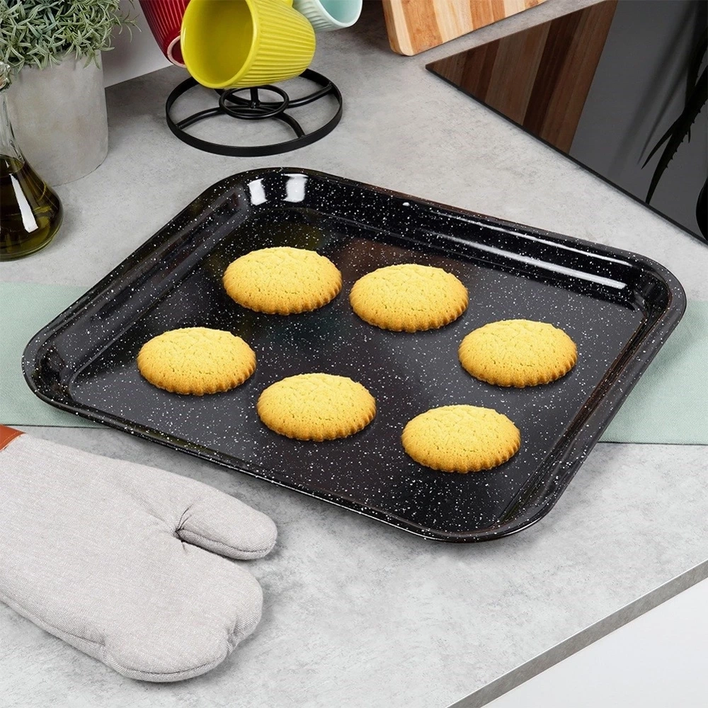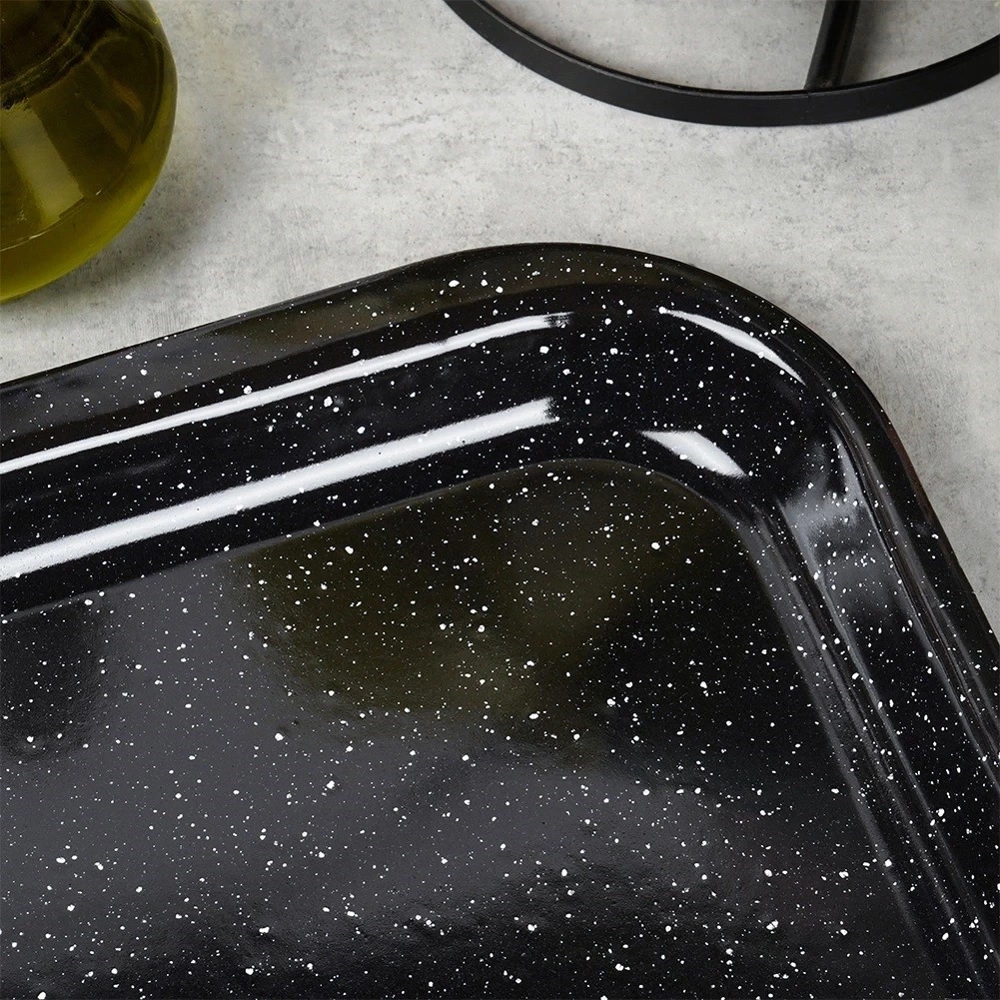 - Blacha wykonana ze stali emaliowanej. Idealna do pieczenia, smażenia wszystkich rodzajów mięs oraz wielu innych potraw. Łatwa w utrzymaniu czystości - potrawy nie przywierają.