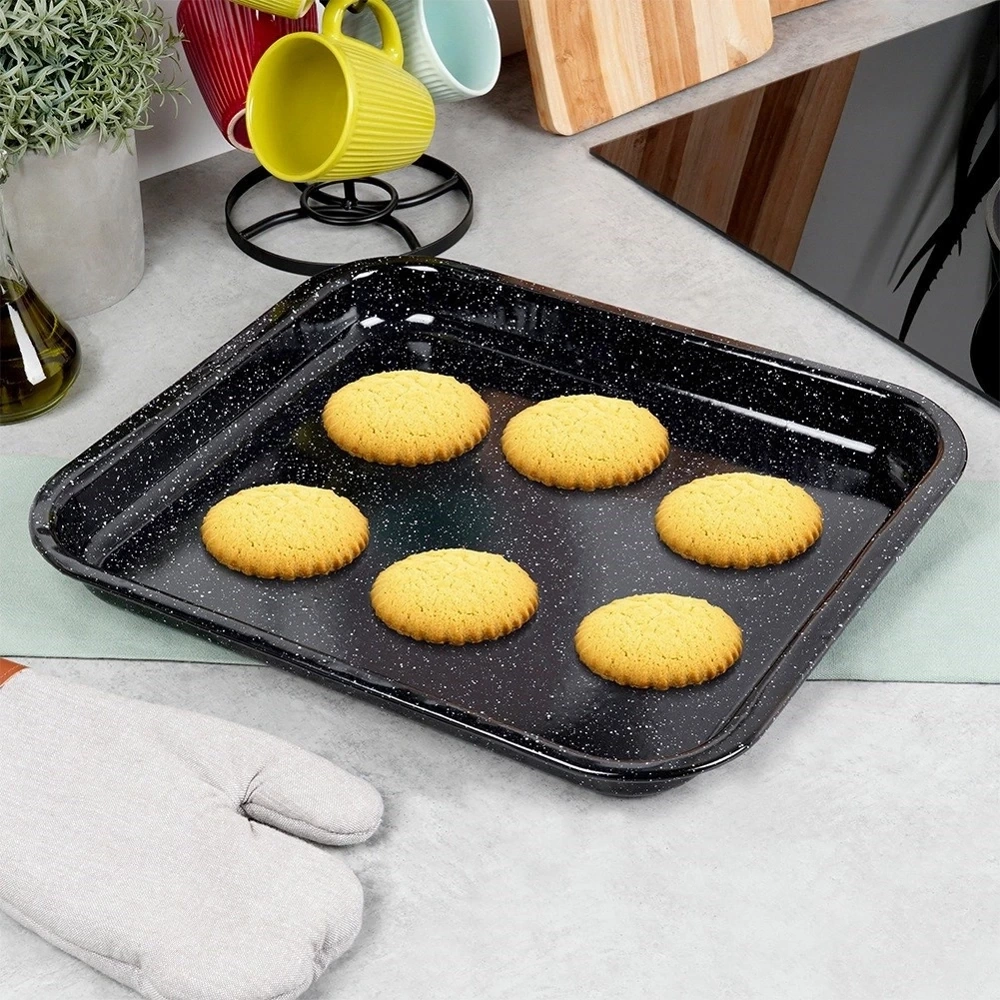 Emaliowana blacha znajdzie szerokie zastosowanie w kuchni. Łatwa w czyszczeniu i użytkowaniu. W blaszce przygotujemy różnego rodzaju mięsa, a także potrawy z warzyw lub ciasteczka. Naczynia emaliowane mogą posiadać niedoskonałości produkcyjne, które są naturalne dla tego typu naczyń: wybrzuszenia, niesymetryczne nadruki itp. Nie wpływają one na jakość produktu i przygotowywanych potraw, a jedynie podkreślają ich metodę tradycyjnego wykonania. Oryginalny produkt czeskiej marki Orion. Wyprodukowano zgodnie z europejskimi standardami.