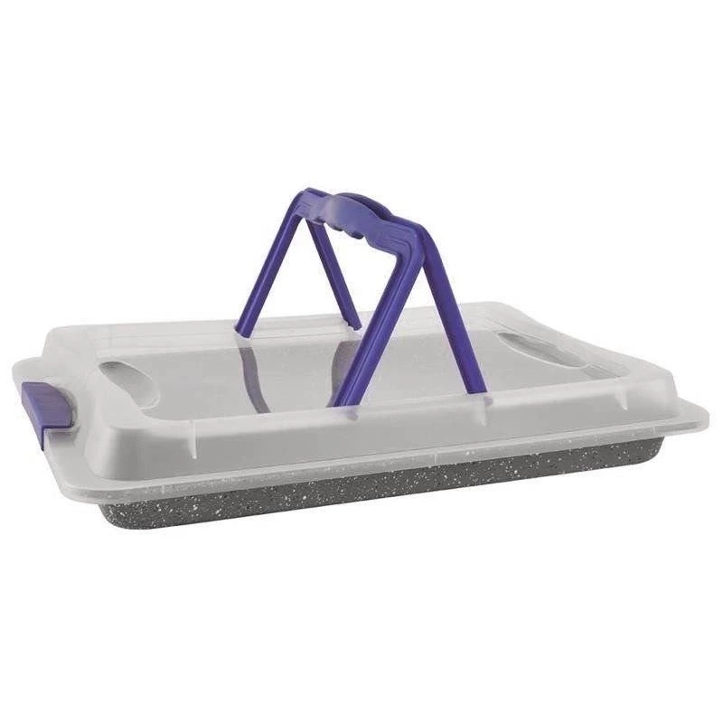 - PRAKTYCZNA - Prostokątna forma do pieczenia z pokrywą. Zestaw składa się z klasycznej formy oraz pokrywy z uchwytami. Blacha ma wymiary 43 x 29 cm. Wysokość blachy z założoną pokrywą wynosi 7 cm. Wymiary wewnętrzne blachy wynoszą 37,5 x 25 cm. Zestaw łączy trzy funkcje - pieczenie, przechowywanie i przenoszenie wypieków.