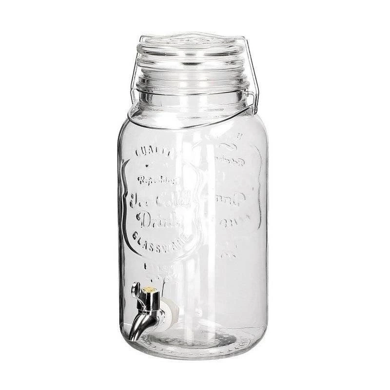 - Słój z kranikiem idealny do lemoniady, napojów z kawałkami owoców lub lodem. Nie trzeba się martwić o owady. Szeroki otwór dla łatwego napełniania oraz czyszczenia.