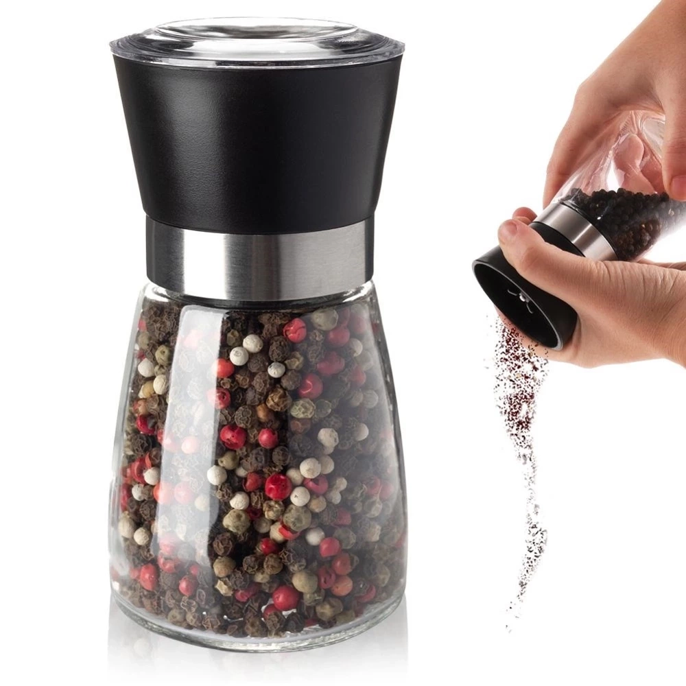 - Ręczny młynek do pieprzu lub soli. Dzięki swoim niewielkim rozmiarom jest niezwykle poręczny. Posiada regulacje grubości mielenia za pomocą pokrętła.