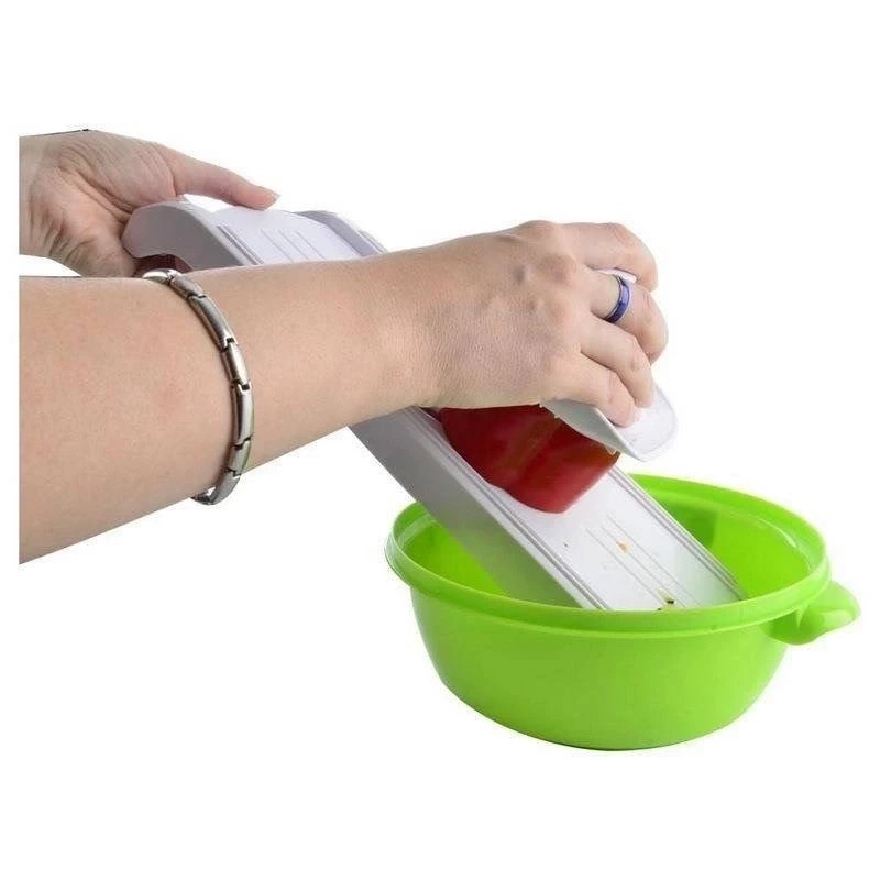 - UNIWERSALNA - Sprawdzi się do krojenia oraz tarcia warzyw i owoców. Niezwykle przydatna w każdym domu. Dzięki jej ostrzom w możemy przygotować z nich również chipsy.