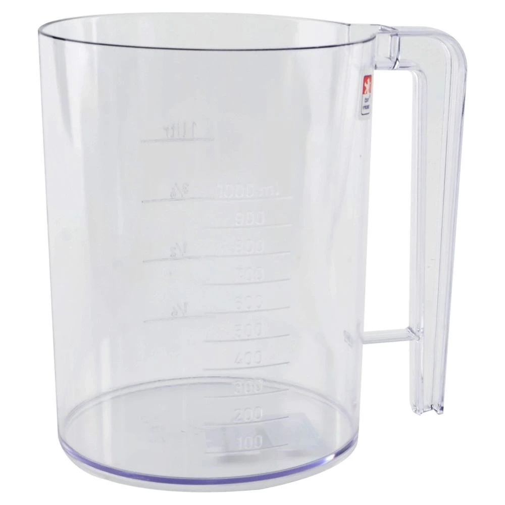 - FUNKCJONALNY - Mikser wyposażony jest w praktyczną miarkę, która ułatwi odmierzanie. Miarka pozwoli łatwo dodać dokładne ilości mąki, cukru, mleka i innych składników. Na pojemniku miksera znajduje się podziałka w mililitrach (od 100 ml do 1000 ml) oraz podziałka w litrach (1/4 litra, 1/2 litra, 3/4 litra i 1 litr).