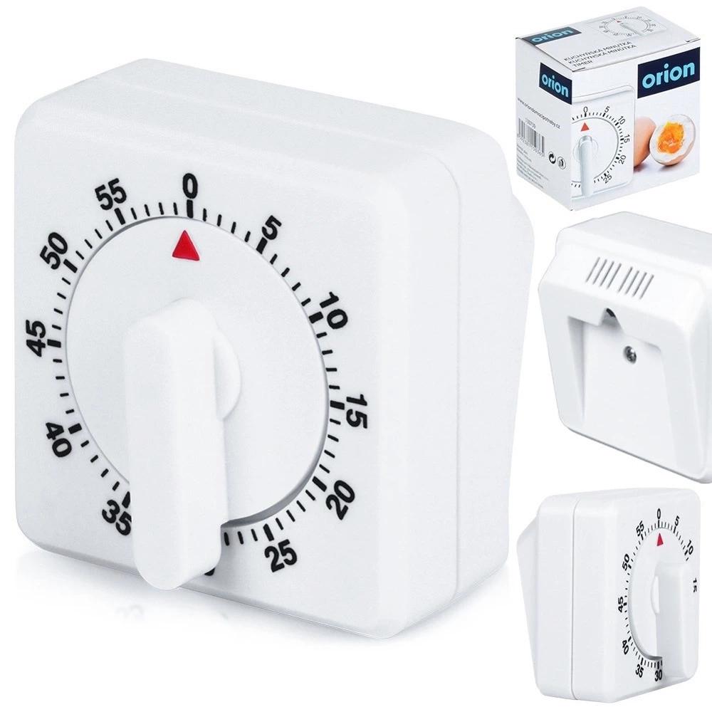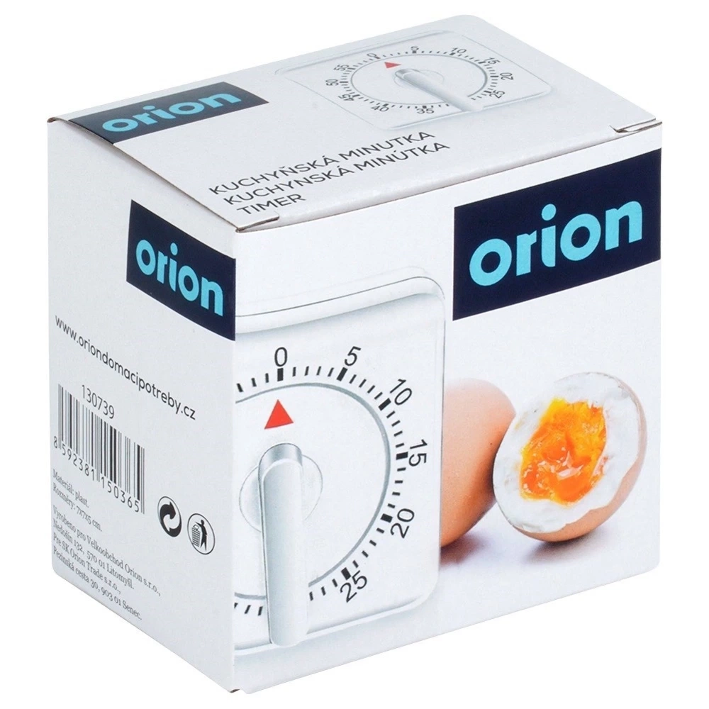 Minutnik kuchenny w mechanicznej wersji. Bardzo łatwy w użytkowaniu, przydatny w każdej kuchni. Z jego pomocą będziemy wiedzieli jaki czas gotują się potrawy. Poinformuje Nas o końcu gotowania potrawy, ale również pozwoli na dopilnowanie czasu np. podczas gotowania jajek na miękko, czy na twardo. Oryginalny produkt czeskiej marki Orion. Wyprodukowano zgodnie z europejskimi standardami.