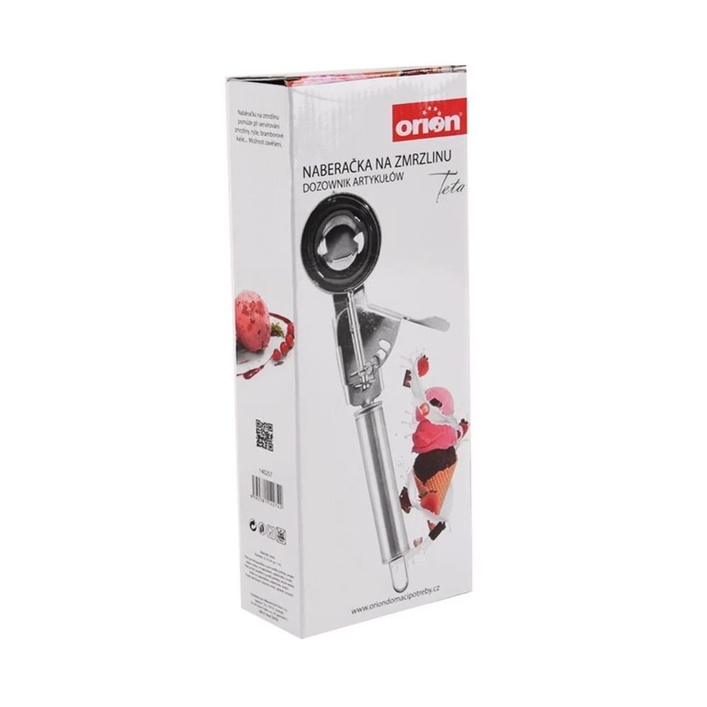 Łyżka do porcjowania i nakładania lodów. Wykonana z wytrzymałych materiałów. Łyżka pozwoli nałożyć nam odpowiednią porcję lodów, ale również ziemniaków czy ryżu. Z jej pomocą czynność ta będzie precyzyjna i prosta. Posiada możliwość zawieszenia, więc możemy przechowywać ją w szufladzie lub zawieszoną np. na relingu. Całkowicie bezpieczna dla zdrowia i neutralna dla żywności. Oryginalny produkt czeskiej marki Orion. Wyprodukowano zgodnie z europejskimi standardami.
