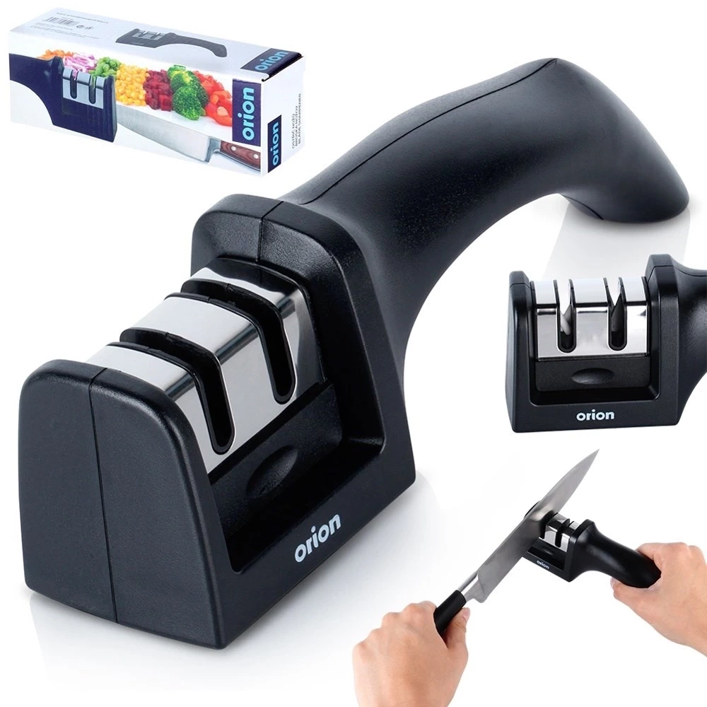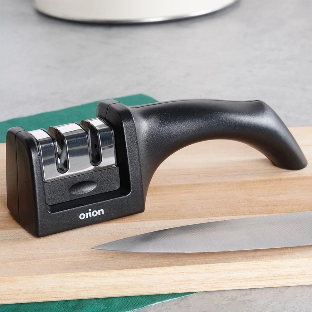 Ostrzałka do noży dwustopniowa. Odpowiednia dla noży bez ząbkowanych i ceramicznych ostrzy. Z jej pomocą możemy naostrzyć każdy nóż w sytuacji, gdy już się stępił. Posiada wygodną rączkę, która zapewni wygodne użytkowanie. Antypoślizgowa podstawa sprawi, że ostrzałka dobrze przylega do blatu. Dzięki ostrzałce ostrość noży jest zachowana nawet do sześciu miesięcy. Oryginalny produkt czeskiej marki Orion. Wyprodukowano zgodnie z europejskimi standardami.