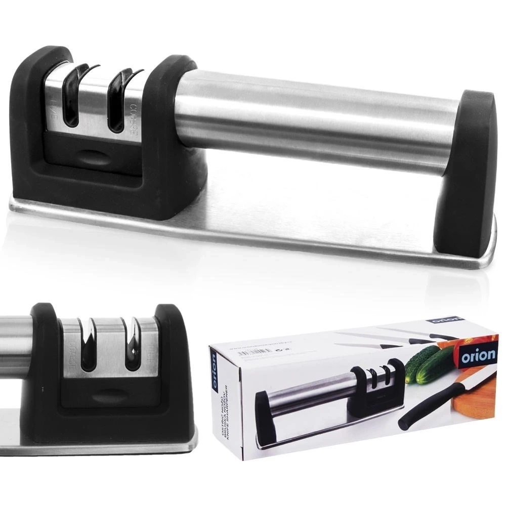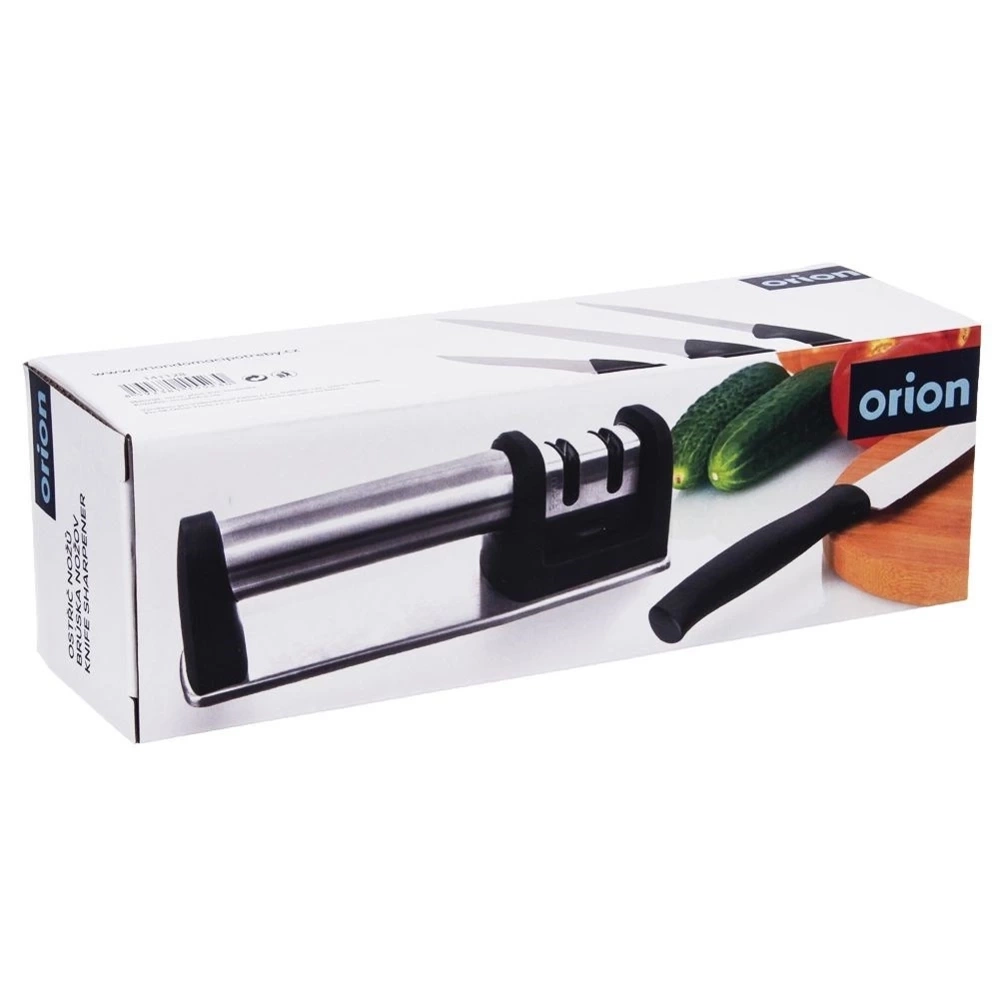 Ostrzałka do noży dwustopniowa. Z jej pomocą możemy naostrzyć każdy nóż w sytuacji, gdy już się stępił. Posiada wygodny uchwyt, który zapewni wygodne użytkowanie. Antypoślizgowa podstawa sprawi, że ostrzałka dobrze przylega do blatu. Dzięki ostrzałce ostrość noży jest zachowana nawet do sześciu miesięcy. Oryginalny produkt czeskiej marki Orion. Wyprodukowano zgodnie z europejskimi standardami.