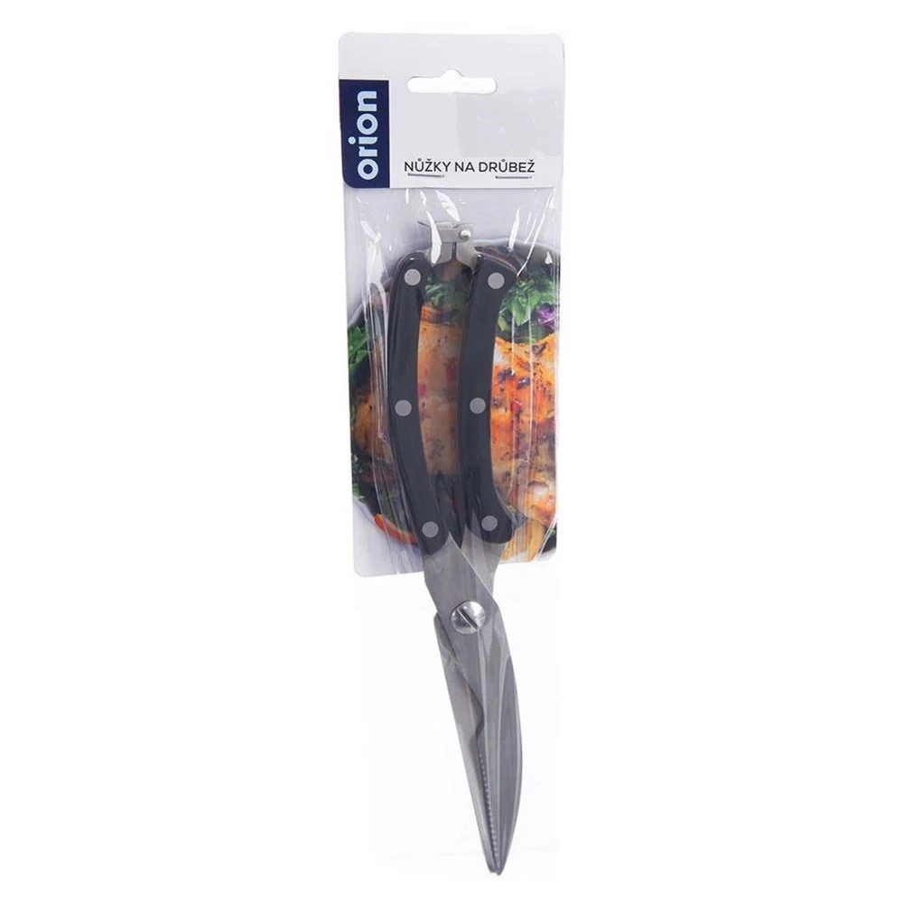Niezwykle przydatne nożyce do cięcia surowego, pieczonego oraz grillowanego drobiu. Dzięki nim krojenie np. kurczaka w całości nie sprawi nam żadnego problemu. Niezwykle funkcjonalne i wygodne w użytkowaniu. Dzięki swojej ostrości poradzą sobie z porcjowaniem bez problemu. Nożyce możemy w bezpieczny sposób przechowywać, dzięki blokadzie, którą posiadają, nie musimy się martwić, że np. dziecko zrobi sobie nimi krzywdę. Oryginalny produkt czeskiej marki Orion. Wyprodukowano zgodnie z europejskimi standardami.