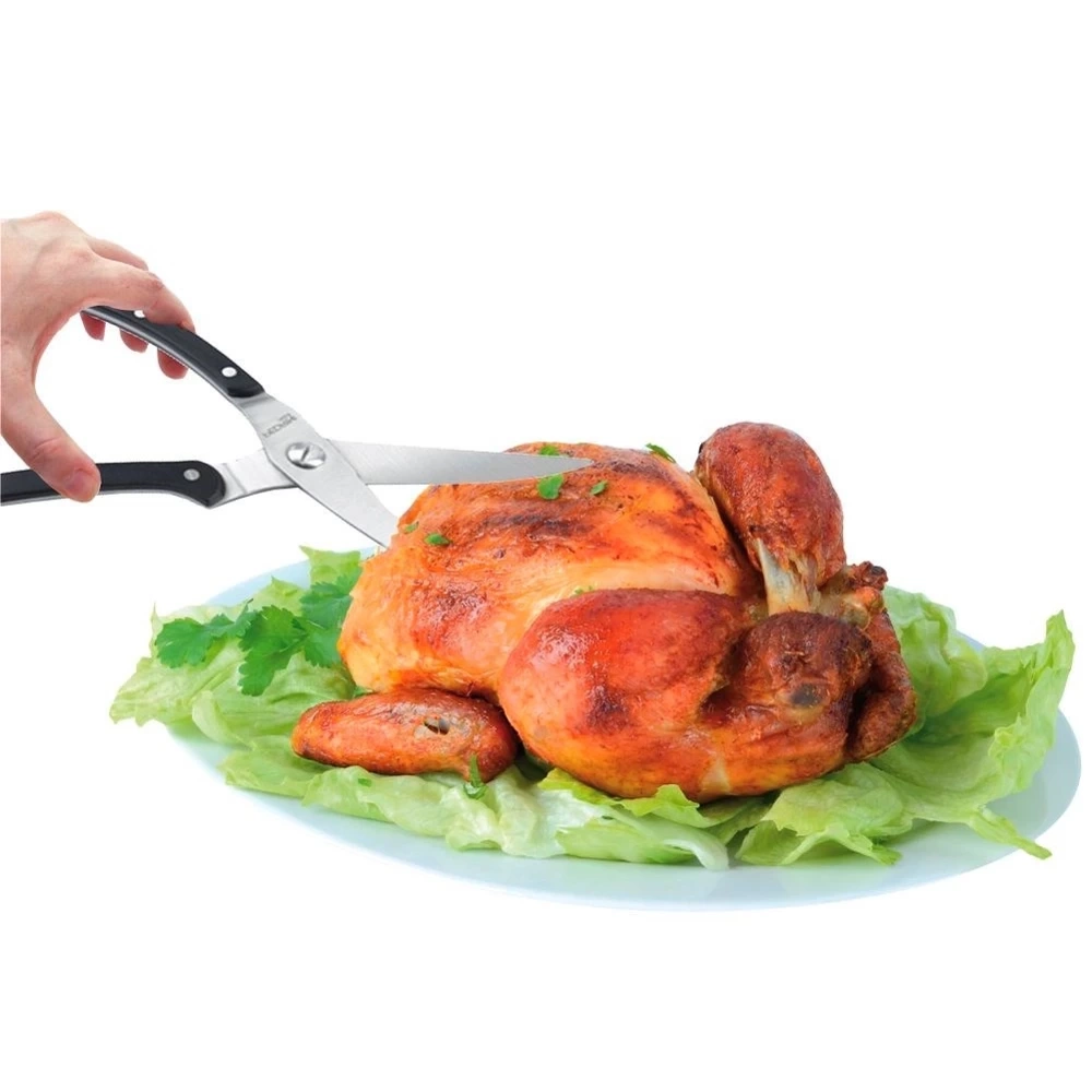- Ostre nożyce do cięcia surowego, pieczonego, grillowanego drobiu. Praktyczny system blokowania - wystarczy nacisnąć przycisk. Wykonane z wysokiej jakości stali nierdzewnej oraz tworzywa.